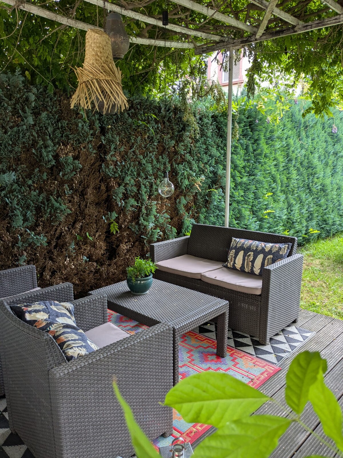 Willkommen in unserer 2023 neu renovierten Wohnung im EG unseres Zweifamilienhauses. Bis zu 4 Gäste können in 2 separaten Schlafzimmern bequem übernachten. Vom geräumigen Wohn- Essbereich mit Arbeitsplatz und offener Küche gelangt ihr auf die eigene Terrasse mit Blick auf den Garten, der gerne mitbenutzt werden darf. Das Wohngebiet ist ruhig und doch nicht weit von den wichtigen Anlaufpunkten Friedbergs entfernt (Zu Fuß: 3 min zur Stadthalle, 7 min Kaiserstraße, 15 min Bahnhof, 17 min Burg).