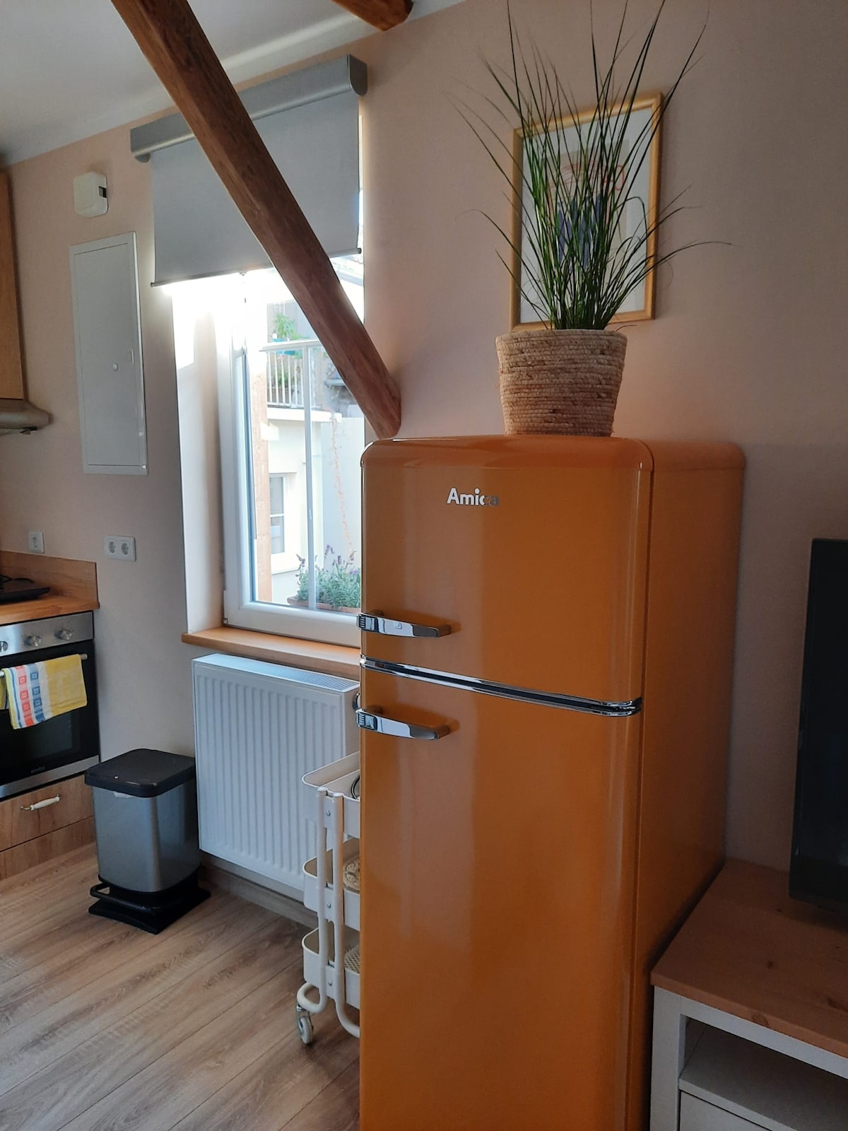 Genießen Sie Ihre Zeit in unserer stil- und liebevoll eingerichteten Ferienwohnung. Unsere Wohnung verfügt über einen offenen Wohn-/Essbereich mit Kochnische, einen abgetrennten Schlafraum und ein Badezimmer mit Dusche. Die Kochnische ist ausgestattet mit Geschirrspüler, Herd, Kühlschrank (+Eisfach) sowie einer Kaffeemaschine. Im Schlafzimmer finden Sie ein bequemes Doppelbett 140cm und einen Kleiderschrank vor. Ein weiterer Schlafplatz steht Ihnen auf der Schlafcouch zur Verfügung.