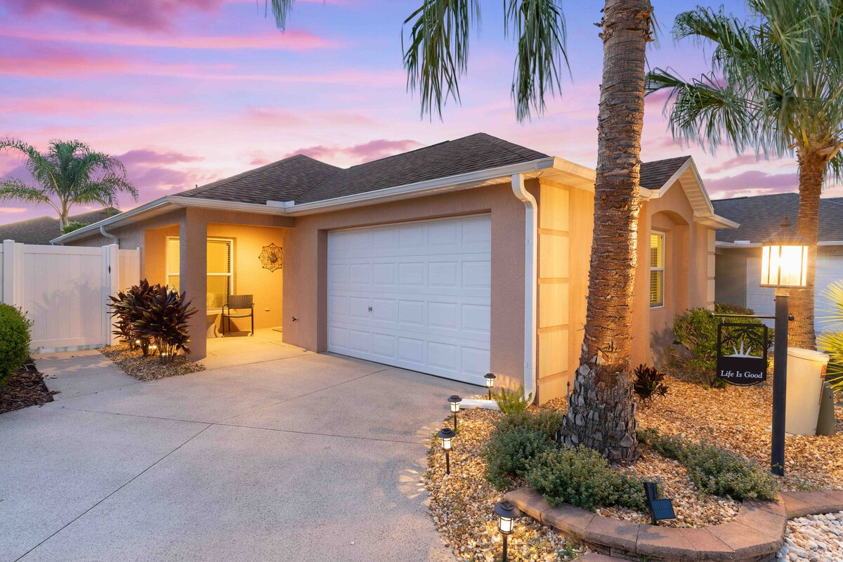 Change your latitude in this beautiful two bedroom, two bathroom Patio Villa in The Villages. Located in the Village of Newell, this spacious and modern home has everything you need to make your stay relaxing and fun, including a golf cart! Enjoy a cup of coffee from the Keureg after your morning stroll on one of the nearby nature trails. Pools, pickleball and golf are all five minutes by golf cart, along with dining and entertainment at Sawgrass Grove and twelve minutes to the new Eastport!