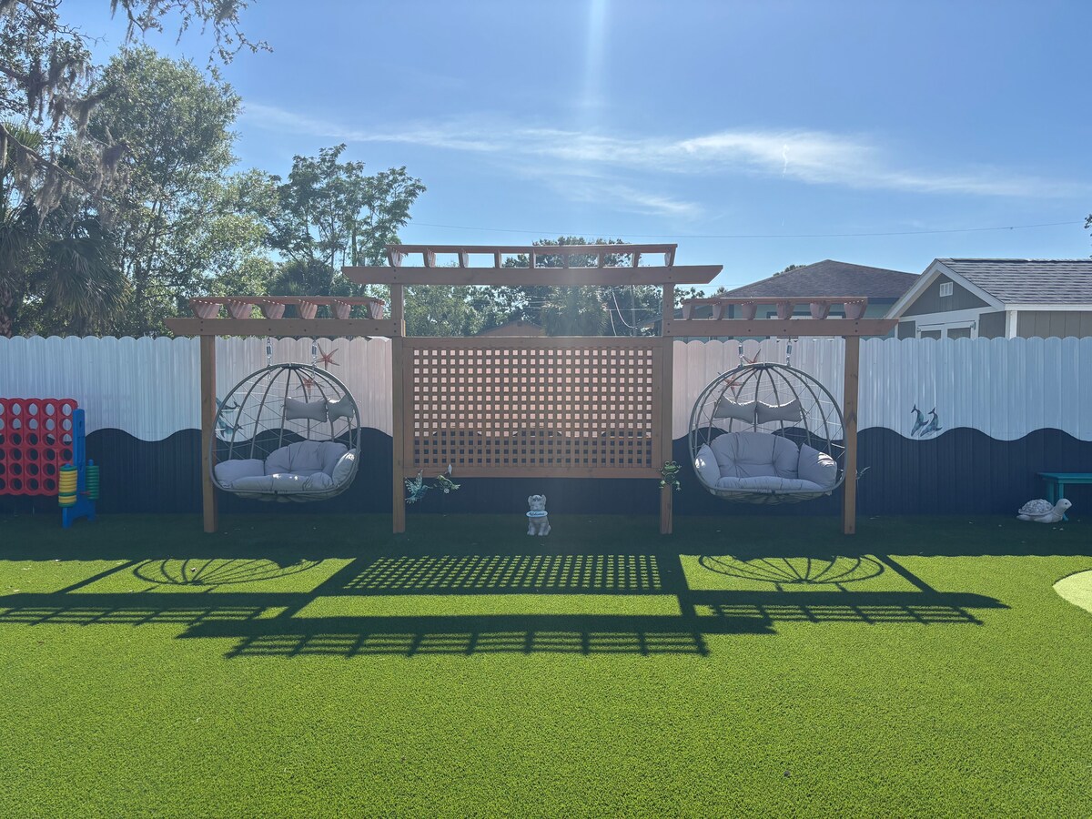 Entspanne dich mit der ganzen Familie in dieser ruhigen Unterkunft. Lustige Tierthematik, komplett renovierte Wohnung im Obergeschoss mit einem Schlafzimmer und Küche. Privater Eingang und Parkplatz auf der Einfahrt. Private abgeschirmte Veranda im Obergeschoss mit Essbereich im Freien und Platz für Familienspiele oder Unterhaltung. Zugang zum Pool und zur Veranda (neu renoviert), Feuerstelle, Baumhaus, Schaukel und deinem eigenen Gasgrill für Gäste. Geräumiger Hinterhof in einer Sackgasse. In der Nähe von Einkaufsmöglichkeiten, Restaurants, Stränden, dem Flughafen und der Autobahn.
