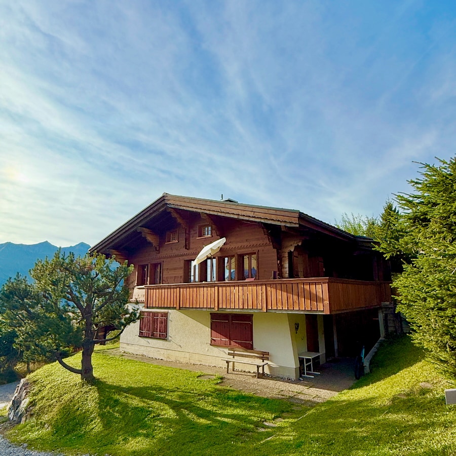 Das charmante Chalet liegt auf gut 1000müM, in den Voralpen des Berner Oberlands. Es glänzt insbesondere mit einer traumhaften Aussicht auf die Bergkette des Niesen und des Thunersee und bietet einen schönen Ausgangspunkt, um die Region zu erkunden. Gäste schätzen die Ruhe des etwas oberhalb der Ortschaft gelegenen Standortes. Speziell auch für Kinder ist reichlich Platz zum Spielen ums Haus vorhanden. Einkaufsmöglichkeiten im Tal sind in etwa 10min mit dem Auto erreichbar.