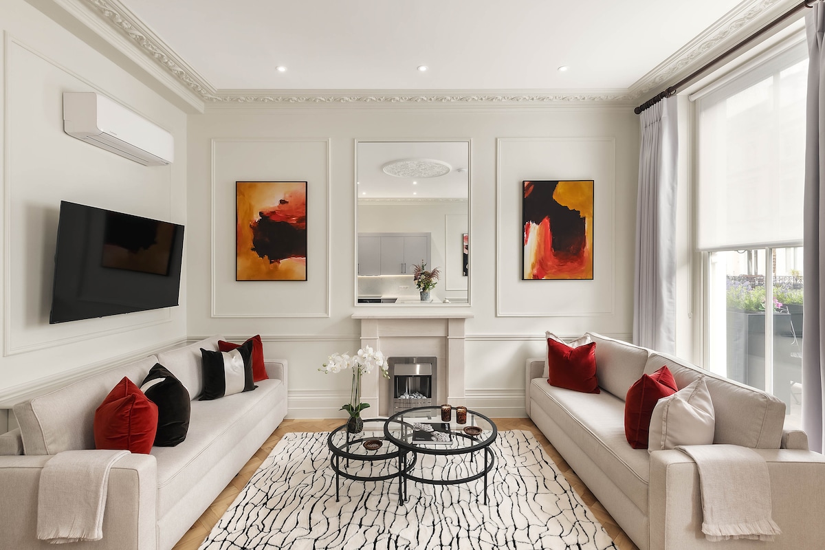 A beautifully presented, one bedroom apartment, placed in a prestigious Victorian garden square. Located in the Royal Borough of Kensington and Chelsea, one of the most exclusive neighbourhoods. Excellent transport, Gloucester Road and Earls Court (7 mins walk) Stations, serves the District and Piccadilly lines. This luxurious, newly renovated apartment boasts a classic contemporary, high-spec designer finish. Modern amenities include USB C & A ports, a Frame TV, wine fridge and washer/dryer.