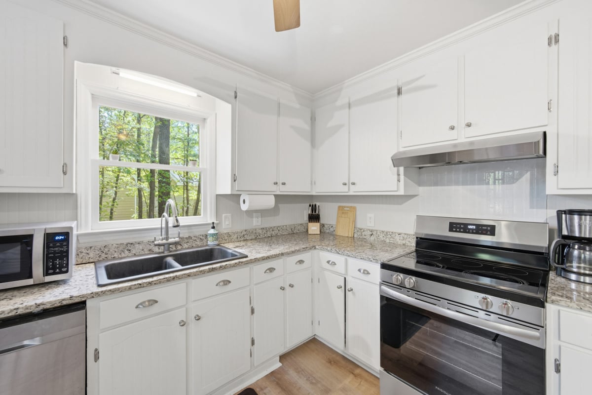 'Owl or Nothing' is a designer cabin on a quiet, wooded 1-acre lot-fresh, spotless, and stocked for easy stays. Unwind in the zero-gravity hanging chair, sleep in fine linens, and cook in a fully equipped kitchen. The star: a barista-style coffee station. Private, secluded, and peaceful yet minutes to dining and shops; a quick hop to Downtown Raleigh, Cary, and Apex, plus Historic Yates Mill and Lake Wheeler Beach. Ideal for a weekend escape, work trip, and mental health resets. See reviews!