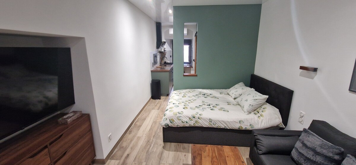 t1 idéalement situé pour visiter bastia ,au cœur de tout les trésors et attractions de la ville. appartement 24 mètre carré entièrement rénové équipé de tout le nécessaire pour un agréable séjour ( serviettes de bain, draps de lit, quelques dosettes de café sucre et thé fournies) ,tv 55 pouces, climatisation, lit double 140 , ect.... insonorisé (fenêtre côté pietonne fermé bien sur) Tous les parkings payants et les places gratuites de la ville sont entre 1 et 5 min à pieds.