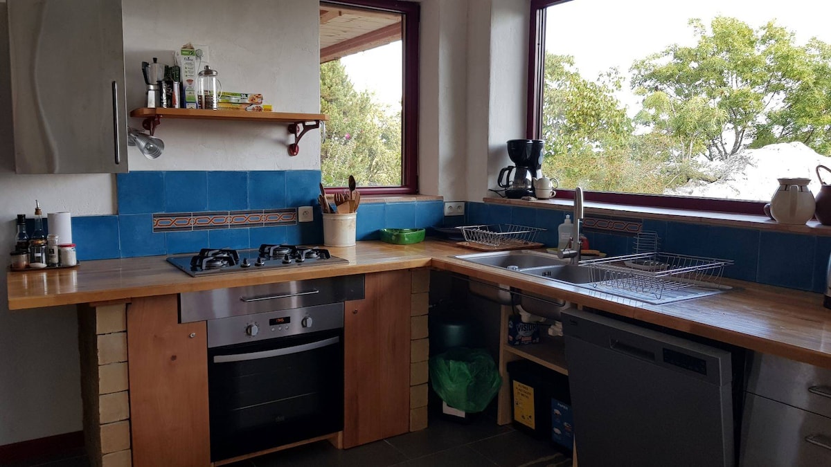 Le studio de 30 m2 se situe sous les voûtes de l’ancien four à pain de notre maison. La pièce à vivre se compose d’une petite cuisine équipée de l’essentiel, ainsi qu’un coin nuit avec un lit double; au fond des voûtes se cache une petite salle de bain indépendante. Isolé à la campagne au pied des montagnes, la terrasse privative vous offrira une belle vue sur la vallée de la Durance. Idéal pour se détendre vous pourrez également profiter sur place de départs de balade et du site d’escalade.