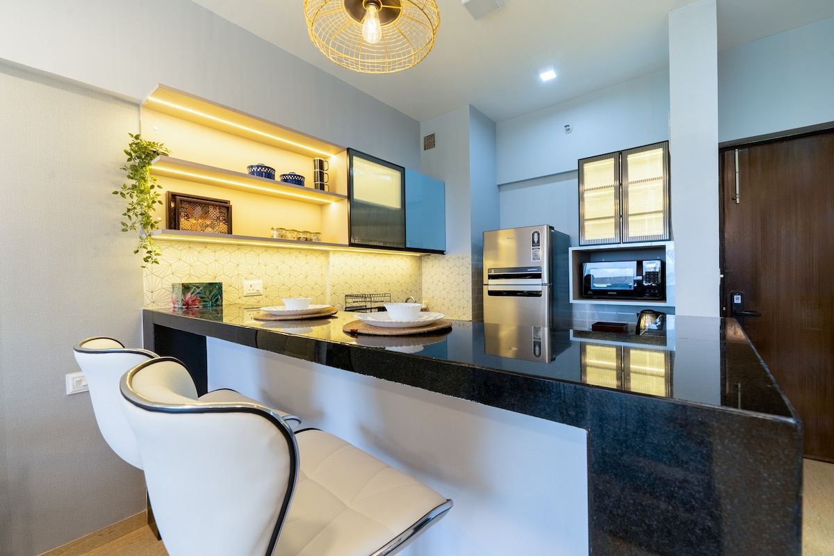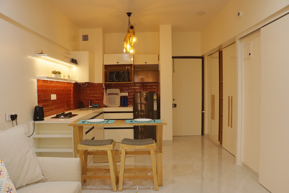 A thoughtfully designed apartment on the 12th floor. Bright, airy, and tastefully furnished, the space offers a calm and comfortable stay with serene green views. Ideal for short or extended stays, it provides modern comforts in a peaceful, well-connected environment. House Rules: No smoking, alcohol, drugs, or loud music. Only registered guests allowed. Maintain cleanliness and respect the property and neighbours. Violations may lead to fines or early checkout.