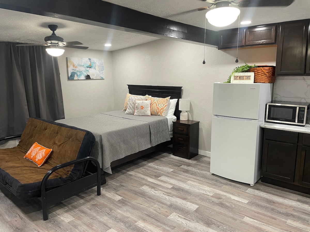 Genieße die Schönheit der Ozarks & des Norfork-Sees. Lass dir von der wunderschönen Landschaft den Atem rauben. Diese Studiokabine befindet sich in einer ländlichen Umgebung im Four Bears Resort. Wir befinden uns 3,2 Meilen vom Fout Boat Dock und 15 Meilen von Mountain Home, AR, entfernt. Obwohl es keine Küche gibt, gibt es einen Minikühlschrank, eine Mikrowelle, einen Fernseher und ein Geschirrnetz. Unser Resort ist ruhig, entspannend und familienorientiert. Es gibt Platz, um dein Boot zu parken. Wir haben ein Haustier- und Rauchverbot in den Hütten.