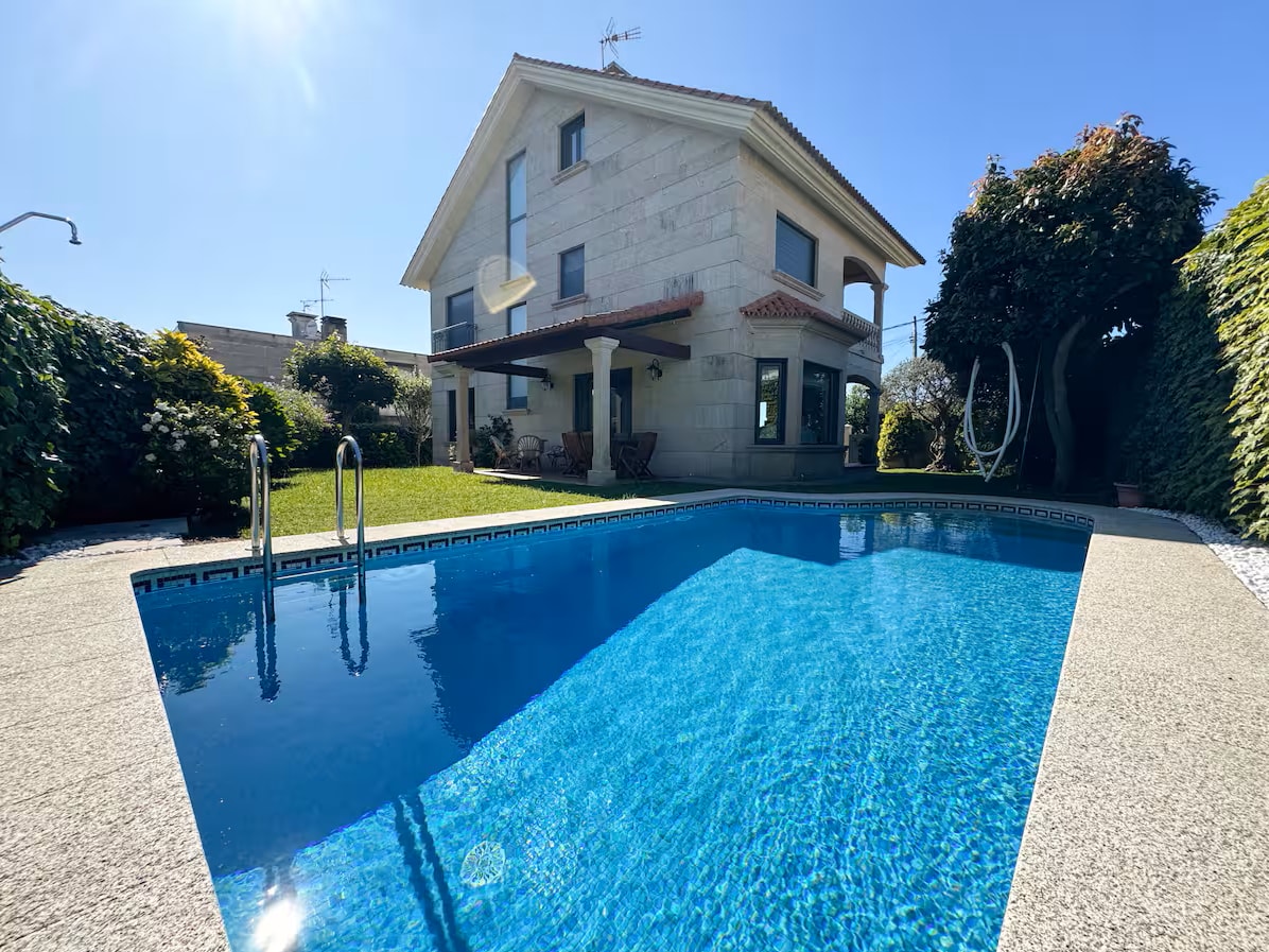 Preciosa casa con jardín sobre las rocas del mar de la ría de Vigo frente a las Islas Cíes, con playa a 3 minutos andando. Sólo se escucha el sonido del mar aunque está cerca de todos los servicios. Acceso directo privado al mar, barbacoa de piedra. Enclavada en una finca de 4.000 m2 compartida con otras viviendas pero con sus zonas de uso privado. Aparcamiento dentro de la propiedad. El precio por mascota podría bajar en función del tamaño.