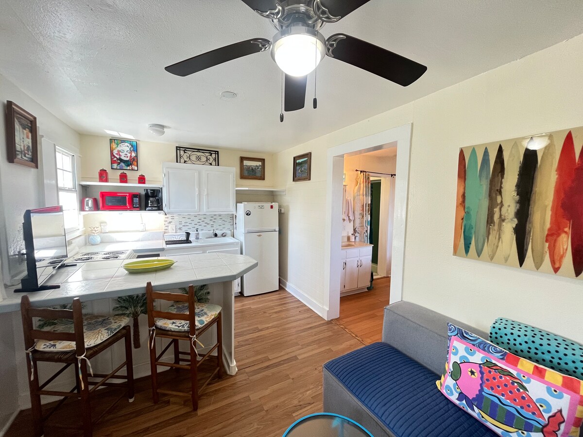 Der perfekte Kurzurlaub mit allen Annehmlichkeiten von zu Hause. Dieser Gästehaus-Bungalow ist der perfekte Ort für 2 Personen. Zentral auf der Insel gelegen, ist es nur ein paar Fahrminuten von allen wichtigen Sehenswürdigkeiten von Galveston entfernt. Kürzlich renoviert, ist es für den perfekten Aufenthalt weg von zu Hause eingerichtet. Die Wohnung befindet sich an der Seite des Haupthauses mit Parkplätzen abseits der Straße und einem privaten Tor/Eingang, um die Wohnung zu erreichen. Eigenständiger Check-in ab 15:00 Uhr mit codiertem Türschloss.