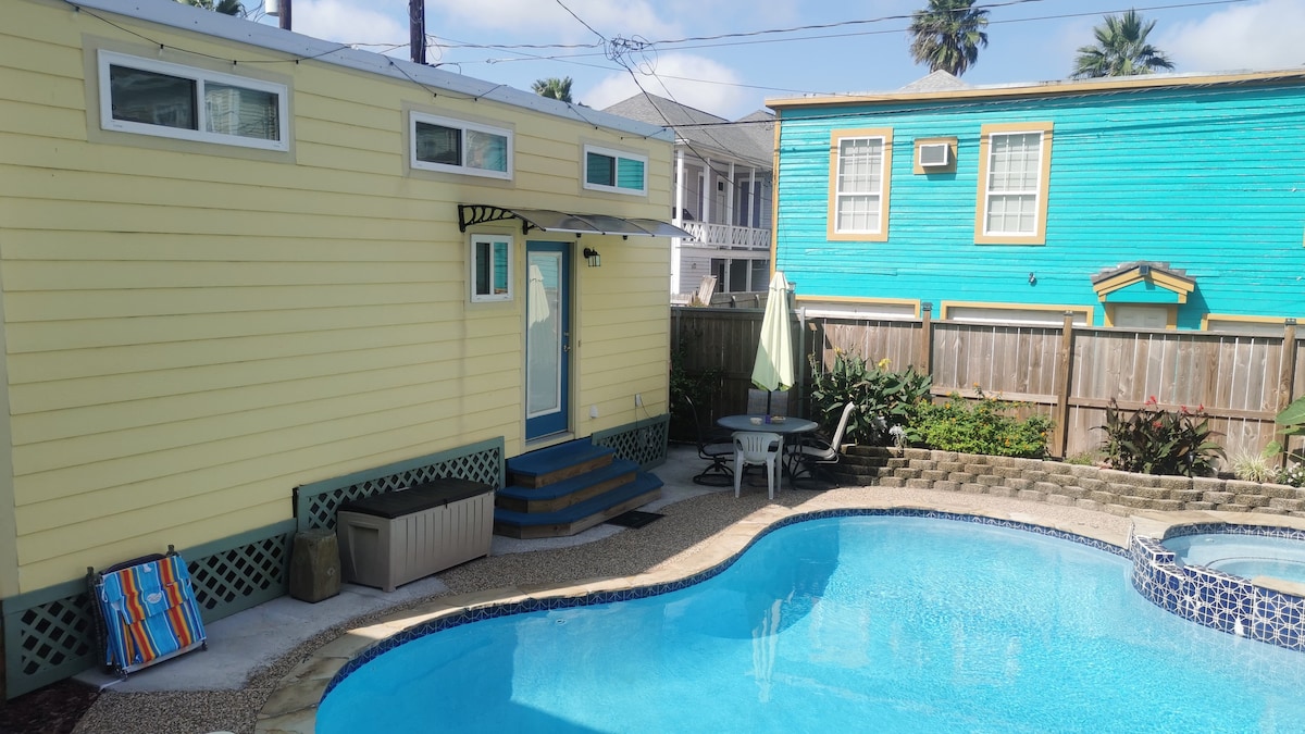 Diese Oase ist ein Rückzugsort am Pool im Herzen der Innenstadt von Galveston. Nur wenige Gehminuten von Restaurants, Einkaufsmöglichkeiten, Kreuzfahrtterminals und dem Besten, was die Innenstadt zu bieten hat, entfernt. Das Tiny bietet Platz für 5 Personen mit einem King-Size-Bett, einer großen Größe und einem ausklappbaren Futon-Sofa. Der private Außenpoolbereich bietet viel Platz zum Ausspannen, Essen und Entspannen. Der Pool ist ein erfrischendes Ende für einen heißen Sommertag mit Strandspaß oder Einkaufsmöglichkeiten in der Innenstadt.