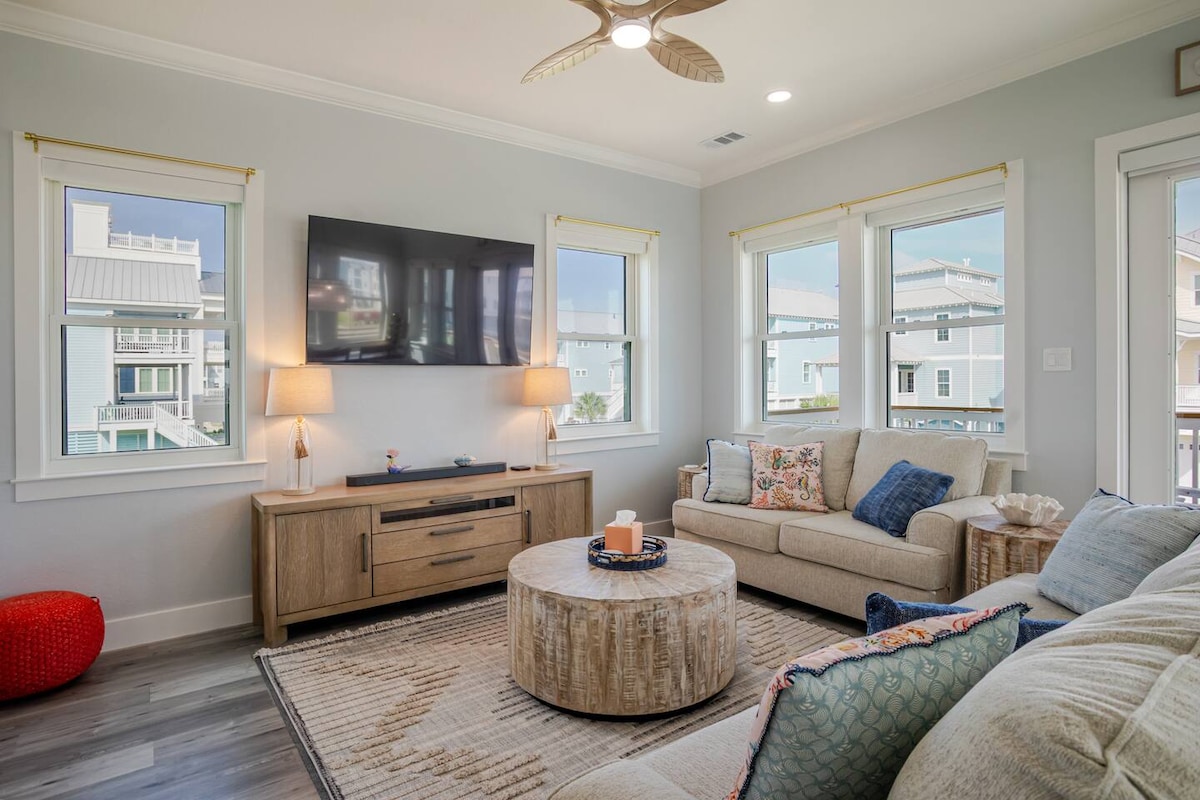 Komm in dieses fantastische Strandhaus in Crystal Beach mit Blick aufs Wasser und nur wenige Gehminuten vom Strand entfernt. Im Außenbereich dreht sich alles um Entspannung und Unterhaltung, mit einer Feuerstelle, Hängematten, schattigen Veranden, weitläufigen Balkonen, einem Weber-Grill und einer Tischtennisplatte. Im Inneren finden Sie 4 wunderschöne Schlafzimmer mit einer zusätzlichen kinderfreundlichen Schlafnische, einen geräumigen Wohnbereich mit Kamin und eine gut ausgestattete Küche, perfekt für Familien, Freunde oder Paare. 5 Minuten Fußweg zum Strand