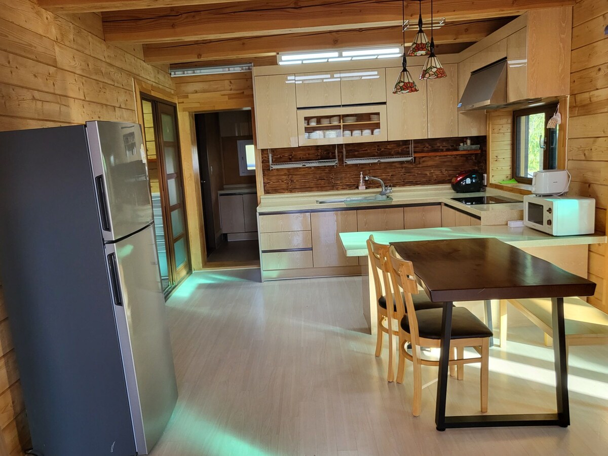 Happy 700 Dies ist ein kürzlich gebautes zweistöckiges Blockhaus aus finnischen Fichten in 800 Highland, Daegwallyeong-myeon, Pyeongchang-gun. Sobald du das Haus betrittst, wirst du einen erfrischenden Duft duftender Bäume erleben. Das ganze zweistöckige Haus steht zur Verfügung, perfekt für Familienausflüge und Gruppenversammlungen. (10-12 Personen) Die Preise variieren je nach Anzahl der Gäste(Gib die genaue Personenzahl ein und überprüfe den Preis) Es befindet sich etwa 800 m über dem Meeresspiegel, der am besten für Menschen zum Leben geeignet ist, so dass man Daegwallyeong-myeon von der Unterkunft mit klarer Luft und offener Aussicht überblicken kann, vor allem im Sommer, so kühl, dass man keine Klimaanlage braucht. Auch der Sonnenuntergang aus der Unterkunft ist wunderschön. Im hinteren Bereich ist der Trekkingplatz Goruypo (1238 m über dem Meeresspiegel) wunderschön gestaltet, sodass du eine Vielzahl von Wildblumen und alpinen Pflanzen beobachten kannst. Darüber hinaus gibt es in der Nähe viele Dinge zu sehen und zu erleben, damit du mit deinen Kindern ein gutes Erlebnis und Erinnerungen schaffen kannst.
