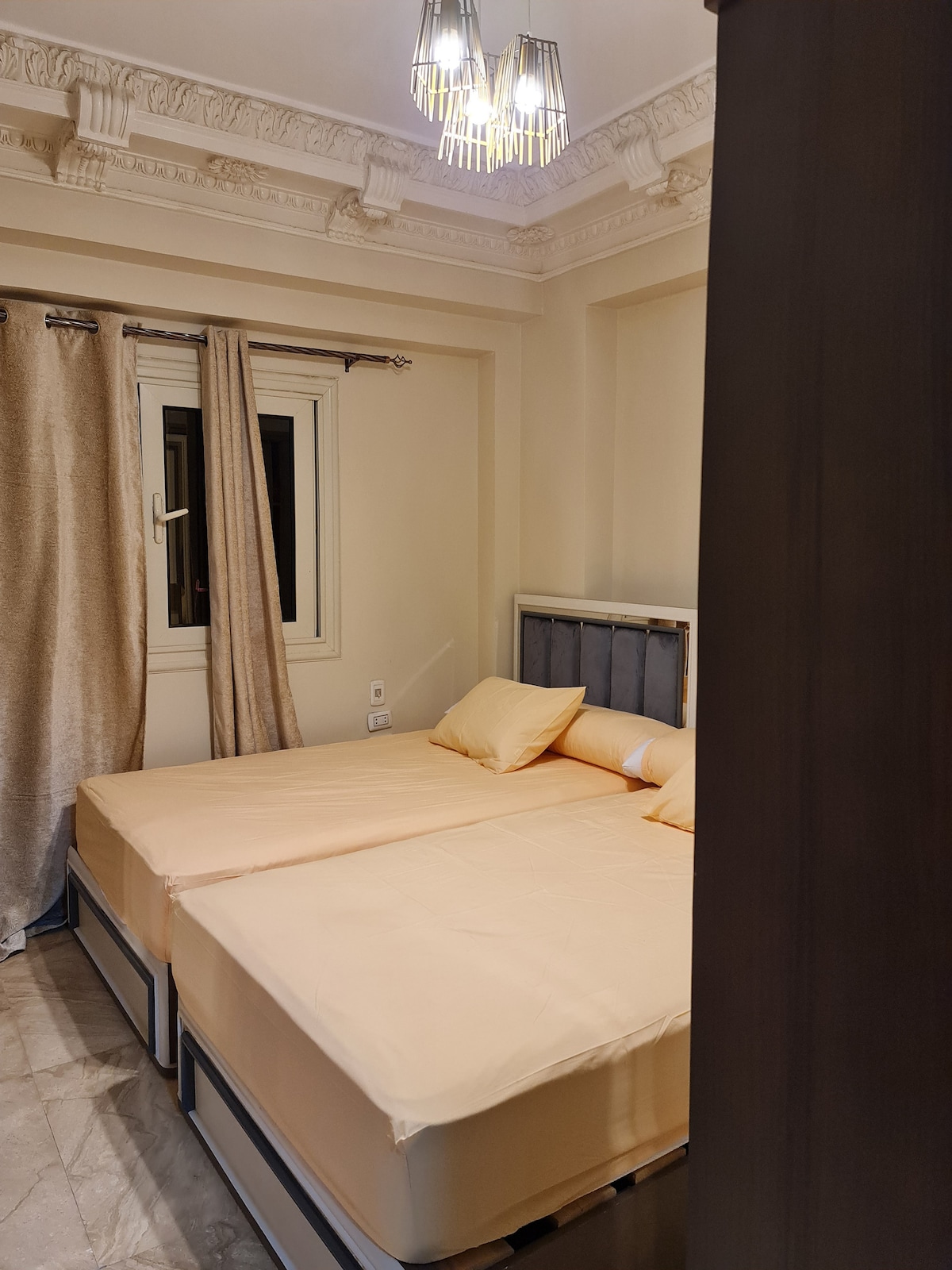 استمتع بإقامة فاخرة في شقة مكونة من غرفتين نوم بتشطيب فندقي، داخل واحدة من أفضل المواقع بمدينة نصر، بجوار مول سيتي ستارز مباشرة. الشقة مفروشة بأثاث أنيق وعصري، وتضم: مطبخ مجهز بالكامل بكل ما تحتاجه (ثلاجة، ميكروويف، غلاية، اير فراير). مكواة وطاولة كوي لتكون إقامتك مريحة وكاملة. صالة واسعة ومضيئة للراحة والاسترخاء. إنترنت فائق السرعة وتكييف مركزي الموقع مميز جدًا، على بعد خطوات من المطاعم، الكافيهات، المولات، وسهل الوصول إلى المطار مثالية للعائلات أو رجال الأعمال الباحثين عن الراحة والفخامة