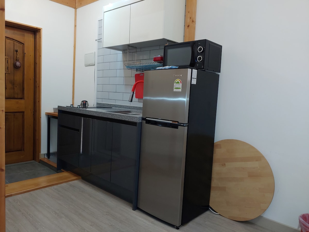 Es ist ein privates Gebäude auf dem Geumbyeongsan Hill hinter Kim Yu-jeong Munhak Village, wo ein Team den Garten und die Unterkunft pro Tag in vollen Zügen genießen kann. Wir bieten Bettwäsche aus 100 % Baumwolle und gekochte Handtücher, die bei jedem Waschen mit dem Duft von Sonnenlicht gefüllt sind. Es ist eine helle Unterkunft mit viel Sonnenlicht durch ein großes Fenster. Es ist ein Studio-Typ mit zwei Einzelbetten nebeneinander, also im Grunde für 2 Erwachsene, und es ist möglich, dass bis zu 4 Personen mit zusätzlicher Bettwäsche, und nur bis zu 4 Personen einschließlich Kleinkinder eintreten können. Kostenlos bis zu 2 Jahren (bis zu 24 Monaten), und es wird kein zusätzliches Bettzeug zur Verfügung gestellt, wenn es kostenlos ist. Sie können Samaksan sehen, und wenn das Wetter gut ist, können Sie einen schönen Sonnenuntergang voller rotem Licht sehen. Frühstück wird gegen Gebühr angeboten. (5.000 KRW/Person, 3.000 KRW/Person für Grundschüler oder jünger, andere Menüs wie Brunch sind für aufeinanderfolgende Nächte verfügbar) Bitte bestellen Sie im Voraus, wenn Sie möchten. Wir bieten keinen Grillservice an. Unsere Unterkunft verfügt über keine Küche, daher kannst du nicht kochen. Du kannst die Mikrowelle und die Kaffeekanne benutzen.