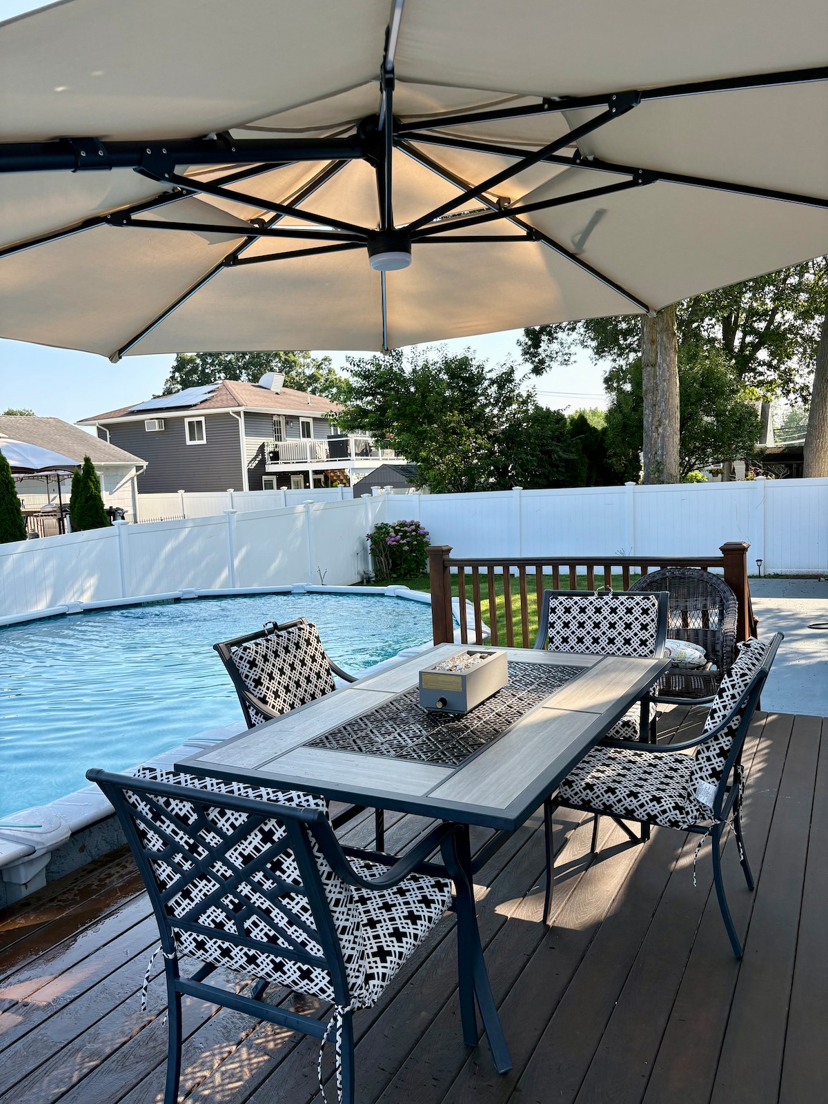 Entspanne dich in diesem gemütlichen, stilvollen Vorort – 10 Minuten zur UBS Arena, Belmont Park und Belt Parkway, 5 Minuten zu CI und S State Parkways, 15 Minuten zum JFK, 10 Minuten zum LIRR und 25 Minuten zum LGA. In der Nähe von Green Acres Mall, Lebensmittelgeschäften und anderen Geschäften, z. B. Target, verschiedenen Restaurants und Waschsalons. Kürzlich renovierte, schlüssellose Suite mit einem Schlafzimmer auf der unteren Ebene, mit eigenem Seiteneingang und komfortablem Queensize-Bett. Saisonaler Zugang zum Deck mit vorheriger Genehmigung. Ideal für Flugpersonal am JFK und Besuch von RNs.