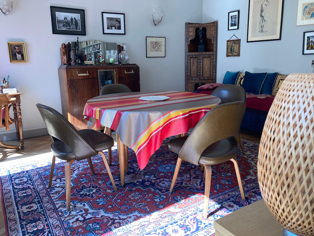 Diese ruhige Wohnung mit einem modernen Dekor mit Vintage-Möbeln bietet 2 große Schlafzimmer, ein sehr großes Wohn-/Empfangszimmer mit einem Tisch für 8 Personen, ein gemütliches Wohnzimmer und ein Bad mit Badewanne. Sehr gut ausgestattet, wird sie Sie mit ihrem Stil und ihren Räumen erfreuen. Zentrum von Paris, gute Erreichbarkeit aller Sehenswürdigkeiten, nur einen Katzensprung von den Hauptbahnhöfen entfernt.