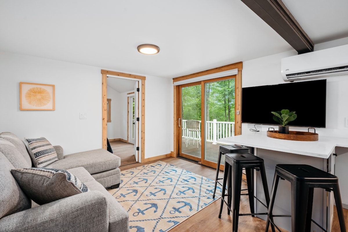Willkommen in unserem durchdacht gestalteten Ferienhaus aus den 1940er Jahren im Wald, nur wenige Minuten vom Good Harbor Beach entfernt. Dieser ruhige Rückzugsort bietet dir Zugang zu dem Wein, Essen und der Natur, für die die Halbinsel Leelanau bekannt ist. Genieße die Feuerstelle im Freien, den Holzkohlegrill, das schnelle WLAN, den Smart-TV und die gut ausgestattete Küche. Schall breitet sich aus, also respektiere bitte unsere Nachbarn. Partys oder Veranstaltungen sind verboten. Alle sind willkommen.