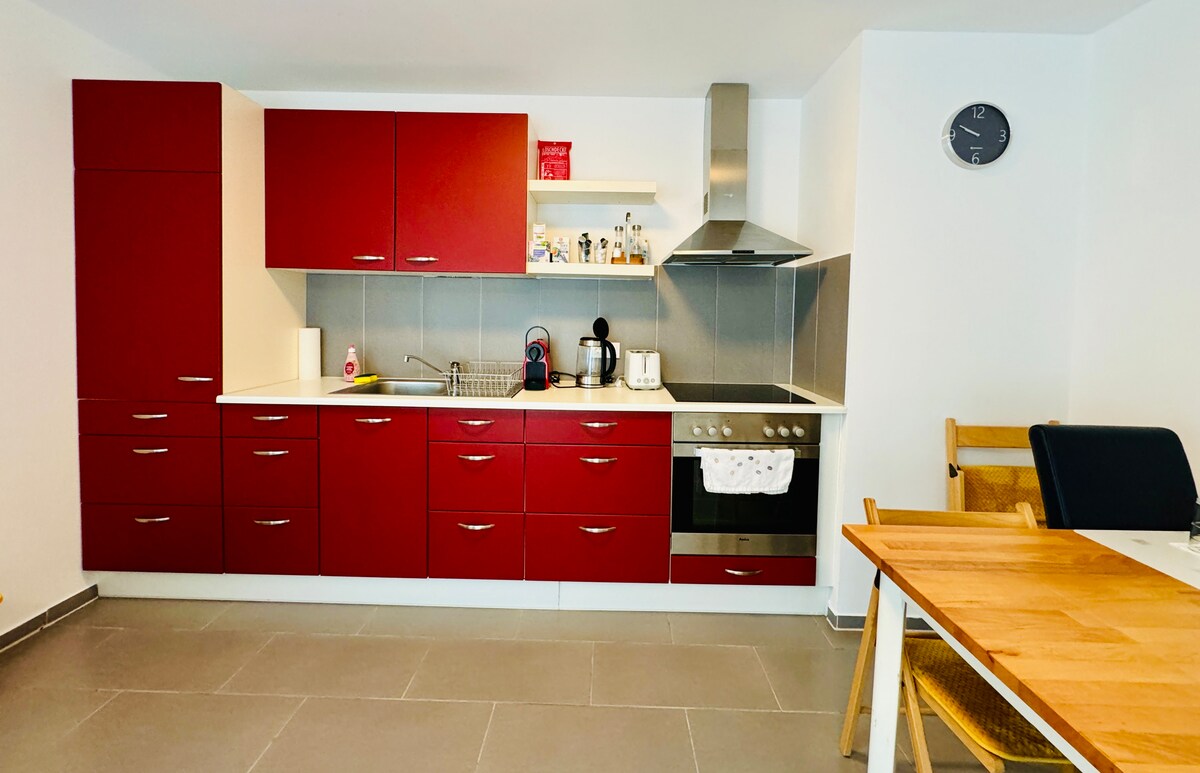 - Geräumige 40 m² Privat Wohnung mit Terrasse und eigenem Eingang - Voll ausgestattete Küche mit Spülmaschine und großem Kühl-/Gefrierschrank - Badezimmer mit Dusche - Gemütlicher Wohnbereich mit 3-Sitzer und Zweisitzer Sofa - Französische Doppelbett (140 cm breit) - Fußweg zur S-Bahn und Regionalbahnhof beträgt nur 10-15 Minuten - Bushaltestelle direkt neben dem Haus - Kostenlose Parkmöglichkeiten vor dem Haus - Ideale Lage für Ausflüge zum Schwarzwald, Tübingen und Stuttgart
