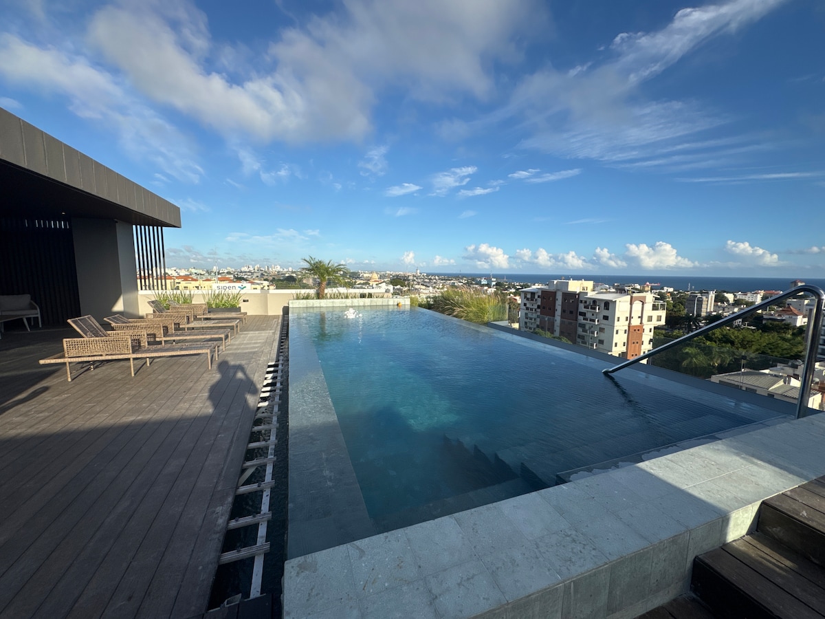 1BR Penthouse in Gazcue+Dachterrassenpool+FITNESSSTUDIO