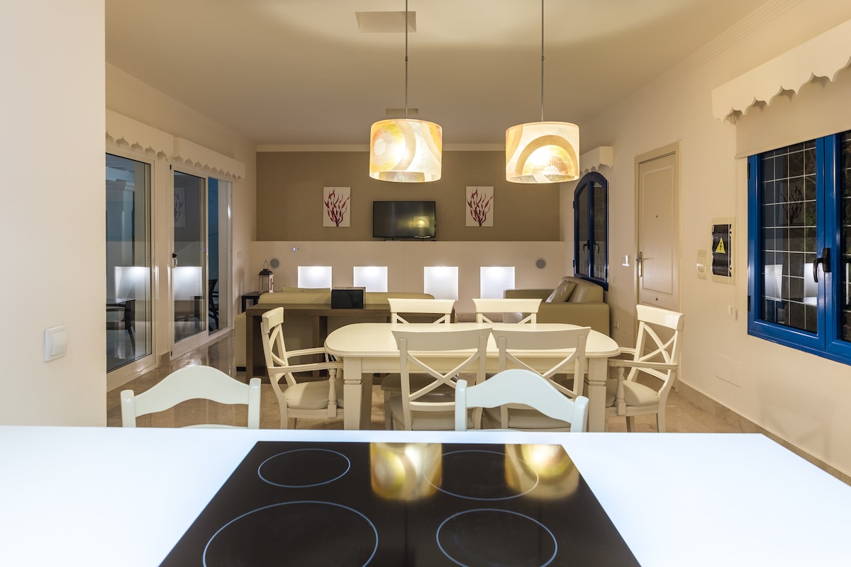 Orange Light ist eine wunderschöne, komplett renovierte und neue Villa in Corralejo! Möchtest du einen romantischen Kurzurlaub mit deinem Partner verbringen? Oder einfach nur einen Familienurlaub mit allem Komfort, damit Sie sich wie zu Hause oder noch besser fühlen? Dank des 5-Sitzer-Whirlpools, des beheizten Infinity-Salzpools, des Grills und des Außenesszimmers haben Sie die ideale Unterkunft gefunden!