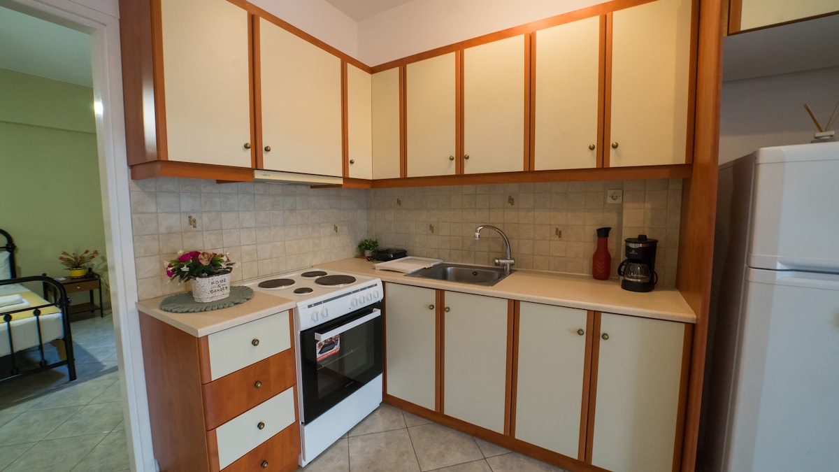 Just 100 meters from an organized beach, our apartments are ideal for families with children and couples. Enjoy the sea on a sandy beach in a peaceful and safe environment. In an excellent location, only 10 minutes from Ancient Corinth and the Corinth Canal, and less than an hour from the ancient theater of Epidaurus and Athens - it's the perfect base for relaxation or exploration.