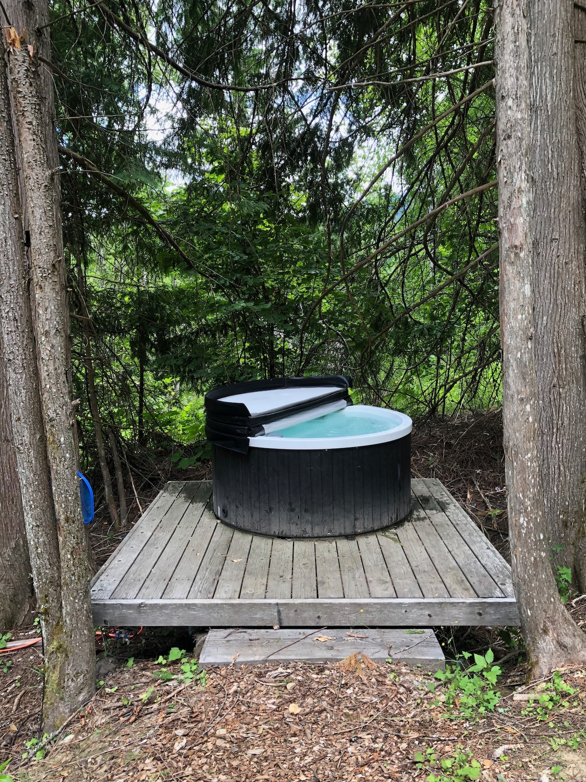 Entfliehe in die Natur in unserer warmen und gemütlichen, gut beheizten geodätischen Kuppel, perfekt für einen ruhigen Rückzugsort. Der Weihnachtsbaum wird am 10. Dezember aufgestellt! Vom Komfort eines Kingsize-Bettes, mit großen Fenstern, die dich mit der Natur verbinden. Im Inneren findest du Sitzgelegenheiten, eine Küchenzeile und ein Badezimmer. Einen kurzen Spaziergang entfernt befindet sich ein Feuertisch und eine private heiße Dusche. Genieße deinen privaten Whirlpool oder erkunde die nahegelegenen Wanderwege. Zusätzlich bietet der nahe gelegene Bach das perfekte weiße Rauschen für einen angenehmen Nachtschlaf!