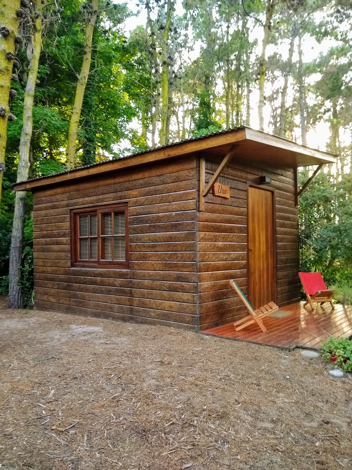 Pequeña y luminosa cabaña inmersa en el bosque. Un lugar ideal para parejas y una alternativa para personas solas que quieran descansar en silencio y despertar con el canto de los pájaros en un ambiente agreste y tranquilo. Cochera privada, tv, Wifi, alarma. Zona de parrilla exclusiva para huéspedes. Barrio residencial y familiar, alejada del bullicio de la temporada. Nos encontramos a 10 calles de la playa y a 15 del centro comercial. ATENCION: NO ACEPTAMOS CUATRICICLOS NI MOTOS.