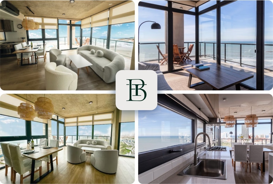 Moderne Wohnung mit Blick auf das Meer und den Golf.