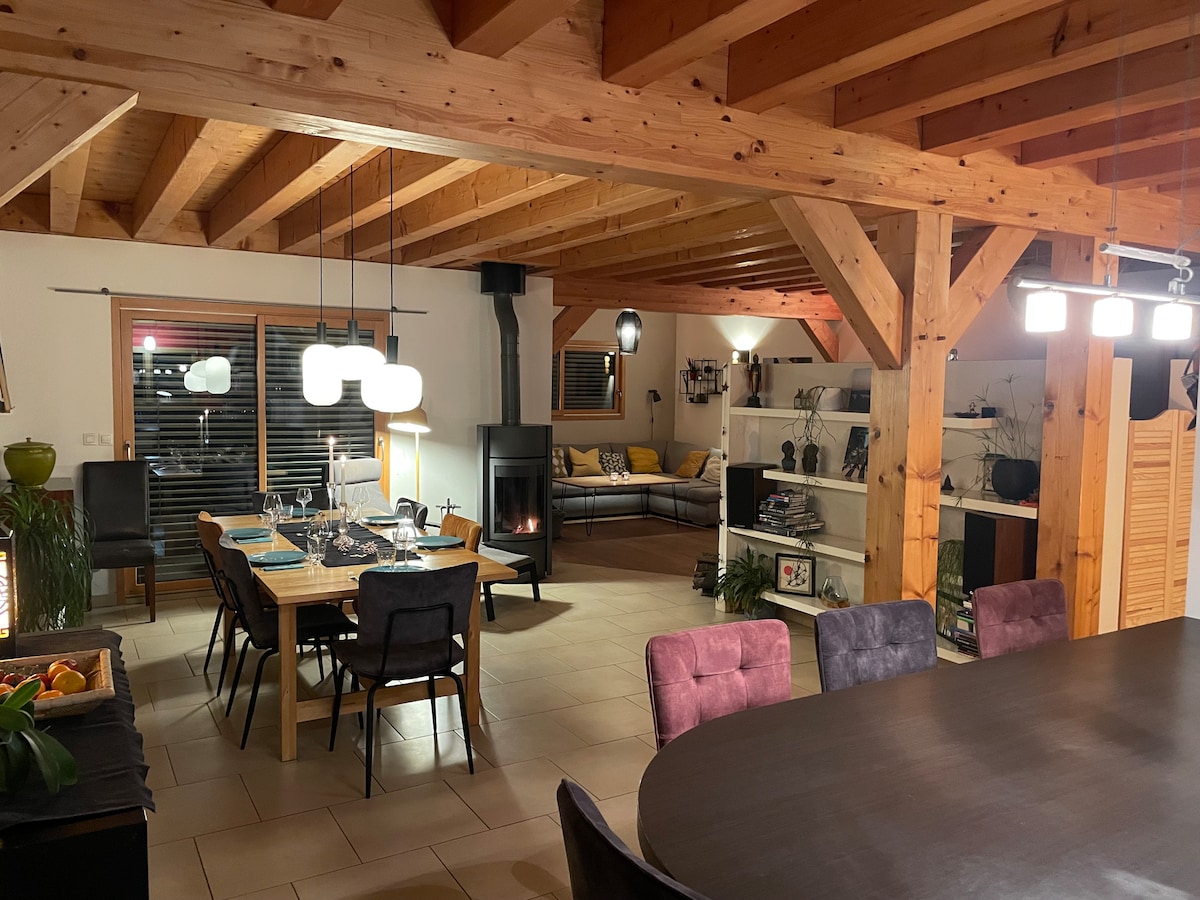 240 m² große Villa auf mehr als 3000 m² in einem Naturschutzgebiet mit atemberaubender Aussicht auf Fluss und Wald. In der Nähe von Genf und den Skigebieten bietet unsere Villa eine perfekte Balance zwischen Natur und Zugang zu städtischen und Bergaktivitäten. Entspannen Sie sich im Whirlpool, während die Kinder im Fluss spielen, unserem natürlichen "Pool", oder beobachten Sie die umliegende Tierwelt. Profitieren Sie auch von einem ausgestatteten Spielzimmer für unvergessliche Momente des Teilens.