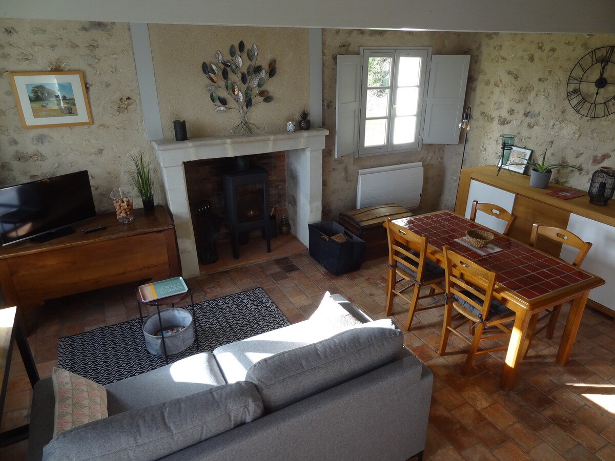 n the heart of the Loire Valley, along the Thouet River: a 700 square foot converted barn (newly renovated) with stunning views of the surrounding countryside. The house is ideally-situated in the heart of the Anjou wine region, a few miles from Saumur (well-known for it's castle and the French National Horse-Riding School, ''Le Cadre Noir'', wine growers, and troglodytes sites). Also nearby: important castles in Angers, Chinon, Montreuil-Bellay, Brézé, as well as Europe's largest monastic center, the Royal Abbey of Fontevraud, which features an excellent music and cultural program. Other worthwhile day trips include the exquisite Loire Valley castles, such as: Chambord, Blois, Cheverny, Azay le Rideau, etc. The house, which is about 187 miles from Paris (300 km), or about 2 hours by TGV, can accomodate two couples with children (sleeps six altogether). The appartement includes : an entrance hall, a large sitting and dining room with a small equiped kitchen, one bedroom, a bathroom, and a small bedroom on a mezzanine level.