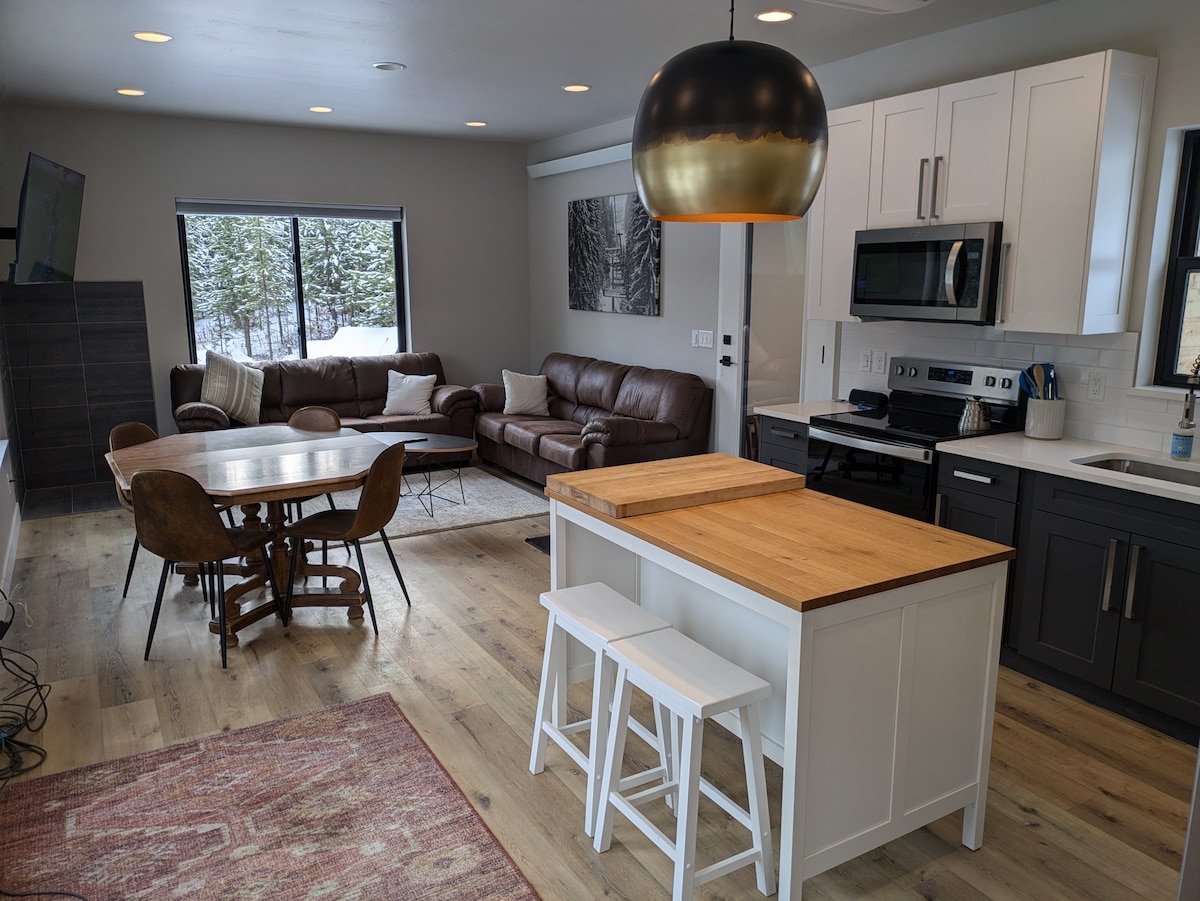 This fully-remolded A-frame with views of Georgetown Lake provides everything you need for a long weekend or an extended stay. Full kitchen with cooking essentials Wood stove both inside and out Wi-fi and good cell reception Georgetown Lake: 1 mile walk Discovery Ski Basin: 15 minute drive Traffic lights: Um, no Easy to access, quiet location. Can sleep up to six with the fold-out couch, four is very comfortable. RV pad w/ power hookup available in summer; + $15/night. No pets.