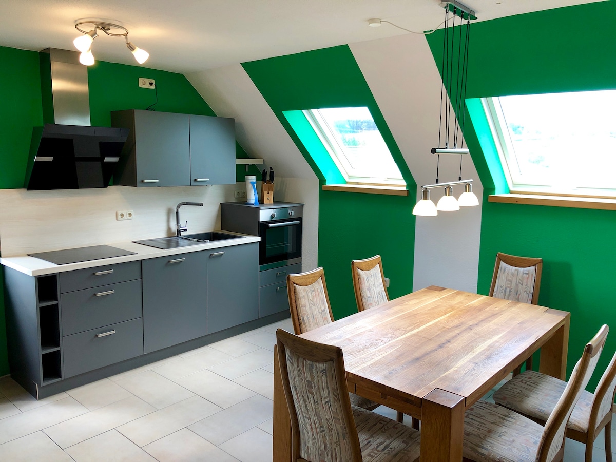 Traumhafte Dachwohnung (130 qm) im Herzen der Vulkaneifel, in Mehren/Daun. Idealer Standort für Wanderer/Radfahrer die Maare und den Eifelsteig zu entdecken, eine Oase zum Entspannen. Großzügiger Wohn-Essbereich führt in den herrlichen Wintergarten mit Kaminofen und auf die Terrasse mit bequemen Gartenmöbeln. Blick über Ort und Tal. Voll ausgestattete Küche. Beide Schlafzimmer mit Doppelbetten (160cm). Vom größeren Schlafzimmer Zugang zur Terrasse. Parken direkt am Haus. Kinder willkommen.