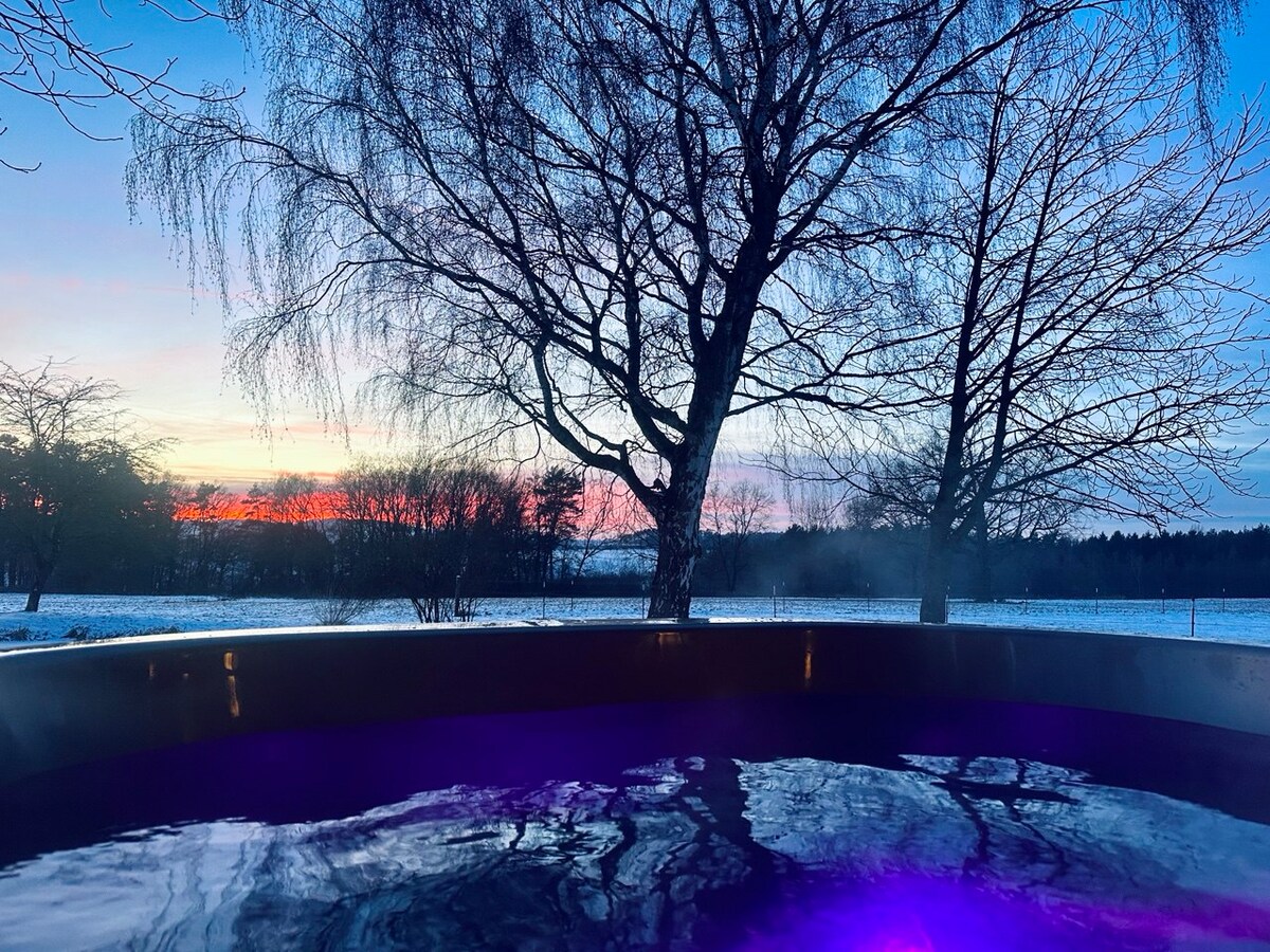 Einfach mal sein! Das idyllische Dorf Vorra erweckt den Eindruck als wäre die Zeit stehen geblieben.Angrenzend an das Naturschutzgebiet liegt unser Romantik Chalet, welches zu erholsamen Tagen zu zweit einlädt. Bei herrlichem Weitblick könnt ihr über das Pegnitztal schauen und die Seele baumeln lassen. Lasst es euch im Whirlpool mit Wasserfall gut gehen, genießt die Wärme der Zirben-Infrarotstühle oder fühlt euch einfach wohl auf der überdachten Terrasse und lauscht dem Plätschern der Quelle.