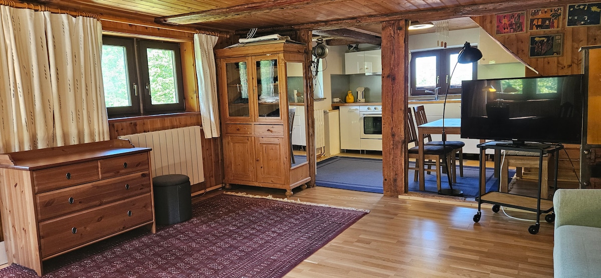 Familienfreundliches Anwesen in Alleinlage. Guter Platz zum Entspannen und Kraft zu tanken. Auch Ihr geliebtes Haustier ist willkommen. Im großen Doppelbett und den zwei Einzelbetten können Sie traumhaft nächtigen. Je nach Bedarf kann ein Kinderreisebett dazu gestellt werden. Das gemütliche Haus hat eine Gesamtgröße von 80qm, wobei der Kachelofen das Herzstück des Hauses ist. Die Küche ist komplett ausgestattet. Auf der Terrasse lädt der wunderschöne Wiesen-und Alpenblick zum verweilen ein.