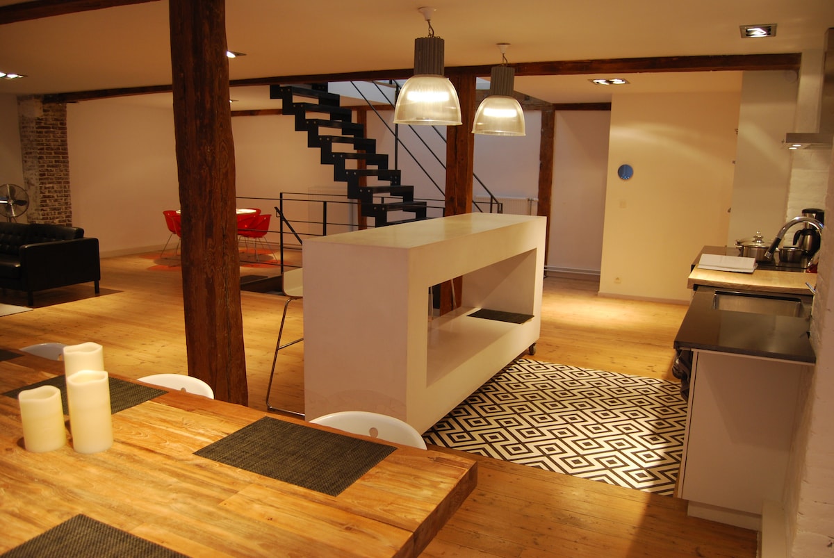 Reservations are exclusively available to verified profiles with positive feedback. The loft, 155m², is a converted warehouse originally built in 1924. It is situated in the canal zone, close to the iconic Tour & Taxis business center and exhibition complex, which is easily accessible via a newly developed park. Once an abandoned industrial quarter, the Tour & Taxis neighbourhood is now undergoing a rapid and fascinating transformation, guided by modern social and sustainability principles.