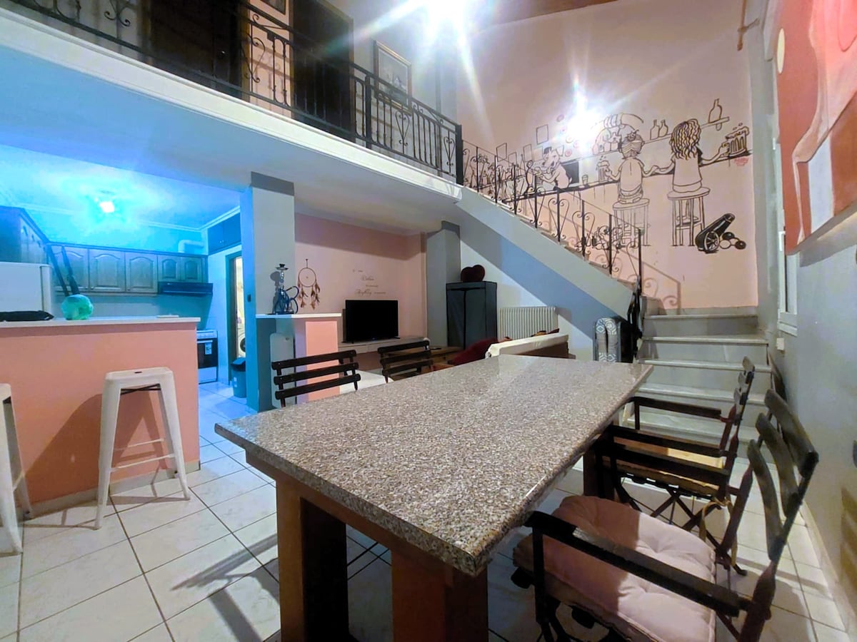 Neu fertiggestellt, ein helles, stilvolles und voll ausgestattetes, elegantes, 70 m² großes, voll klimatisiertes Loft, das problemlos die Bedürfnisse von 1–5 Reisenden erfüllen kann. Es ist in Kalamata in einer nicht überfüllten Gegend auf einer ruhigen Straße mit einfachem Parken gebaut. Gäste haben vollen Zugang zu allen Haushaltsgeräten, Ausstattungen, Annehmlichkeiten sowie WLAN-Verbindung. Sowohl der örtliche Strand (1 km) als auch das Stadtzentrum (2 km) sind ein einfaches Ziel. Lebensmittelgeschäfte, Imbisse und kleine Bäckereien sind alle bequem zu Fuß erreichbar.