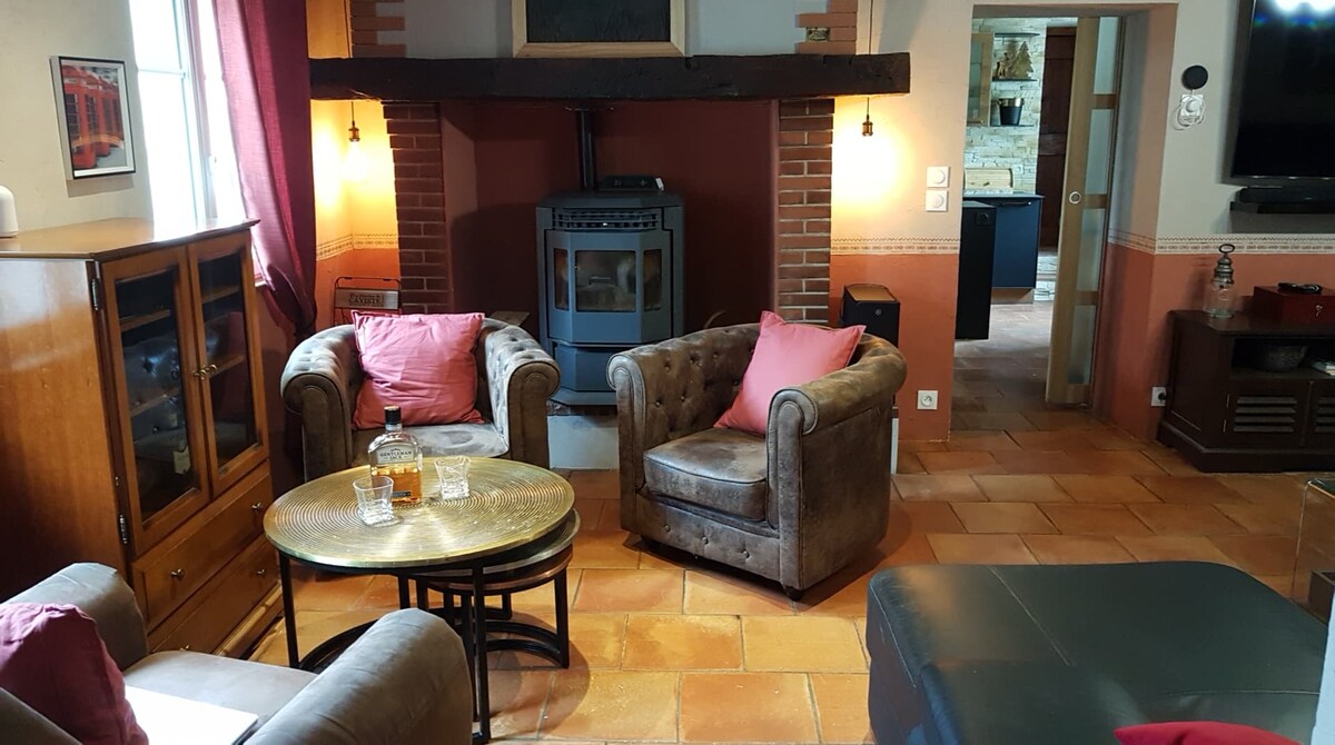 35 Minuten von Toulouse entfernt, Suite für 6 Personen. Mitten in der Natur, Schwimmbad und Landschaftsgarten (4000 m2), überdachte Gartenlounge (Plancha + Kühlschrank), Zierbecken (70 m2), Bouleplatz. Schöne dominante Aussicht. Großzügiger Brunch. Keine anderen Urlauber als Sie, Pool und Garten ausschließlich für Sie reserviert. ENDE 2025: SPÄTER CHECK-OUT (17:00 Uhr) bei AUFENTHALT VON 2 NÄCHTEN oder mehr B&B / Brunch inklusive: 88 m2 Suite mit 2 Schlafzimmern, 1 großes Wohnzimmer (klimatisiert, Canal +), 1 kleines Wohnzimmer / Schlafzimmer, 1 Badezimmer.