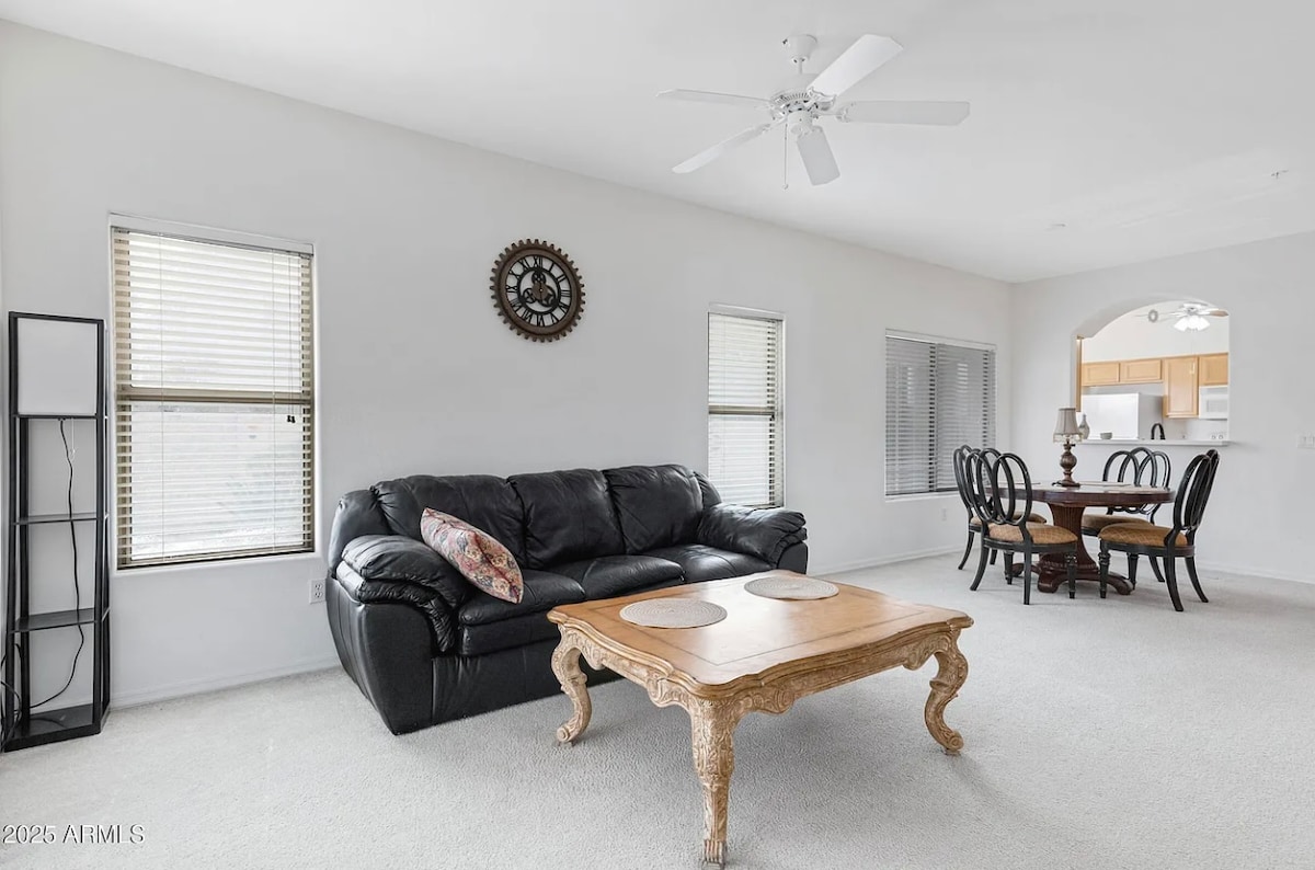 Take your shoes off and relax in our fully remodeled and modernized 1 bedroom apartment with queen bed. Located on in a very quite corner just miles from Superstition Shopping Center with easy access to US 60. Wake up and take a hike in the Superstition Mountains, visit Arizona's new surf park (Surf's Up) or pick up some fresh produce at Vitiglio Farms just minutes away. Whether you are in town for adventure or work you will love our cozy & beautifully decorated apartment.