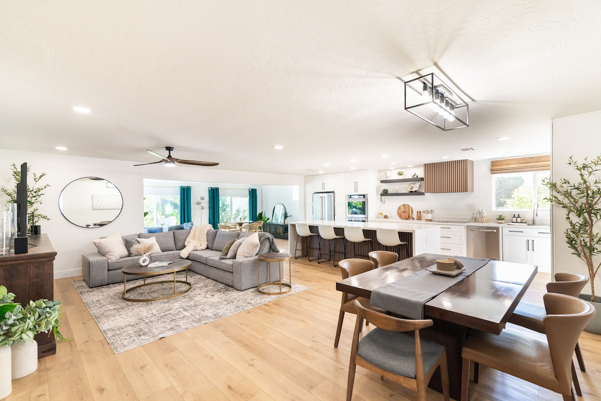 Bist du bereit für einen Rückzugsort? -Privater Pool/Spa -Verstellbares Kingsize-Bett, plus zwei Queensize-Betten und zwei Einzelbetten -Betten, Kissen und Bettwäsche in Hotelqualität -Zwei Wohnzimmer (eines mit einer Motorradbar!) -Fernseher in jedem Zimmer (Netflix- und Amazon-Prime-fähig) -High-Speed-WLAN -Voll ausgestattete Kaffeestation -EV-Ladestation (Level 2) -Elektrischer Gartengrill -Sitz- und Essbereiche im Hinterhof - Sitzbereich auf der Vorderseite der Terrasse -Voll ausgestattete Küche -Waschmaschine und Trockner - Klimaanlage ... und mehr. Buche jetzt deinen Aufenthalt!