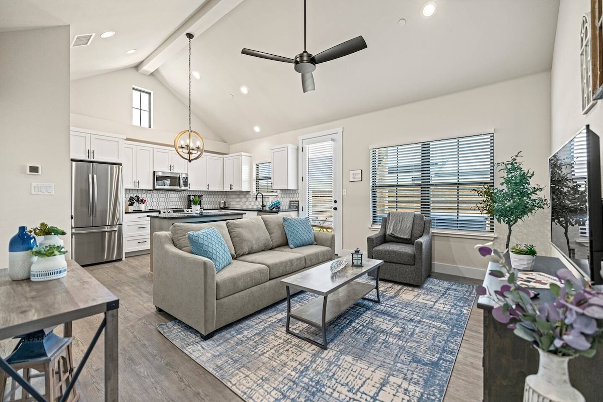 Die „Pecan Villas“ in Fredericksburg ist eine brandneue, moderne Eigentumswohnung nur wenige Minuten von der Main Street in Fredericksburg mit einfachem Zugang zu Weingütern, Luckenbach, Enchanted Rock, malerischen Texas Hill Country Fahrten und vielem mehr. Dieses Haus verfügt über 2 Hauptschlafzimmer mit Kingsize-Betten und eigenen Badezimmern, einen großen Treffpunkt mit einer voll ausgestatteten Küche, einen elektrischen Kamin und eine private Außenterrasse. Ich würde mich freuen, dich für deinen Hill-Country-Kurzurlaub als Gast begrüßen zu dürfen!
