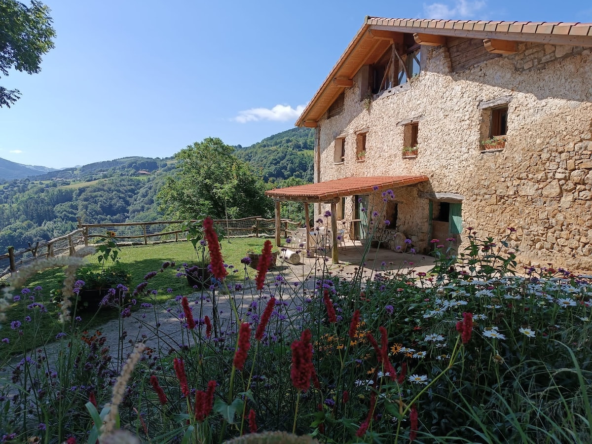Renoviertes altes Haus in der Mitte der Natur, am Fuße des Hernio. Umgeben von Wäldern und hohen Wiesen, ein schöner Weg, um in 20 Minuten zum Dorf zu gelangen, ein anderer über die Straße 10 Minuten. 26 km nach San Sebastian und Zarauz. Ein vielfältiges kulturelles und gastronomisches Angebot. Das Bauernhaus ist in zwei Häuser unterteilt. Neben dem Agrotourismus. 4 Schlafzimmer, Küche, Wohnzimmer und Lesebereich. Das ganze Haus ist vermietet. Integriert in die Nutzung des ökologischen Landbaus.