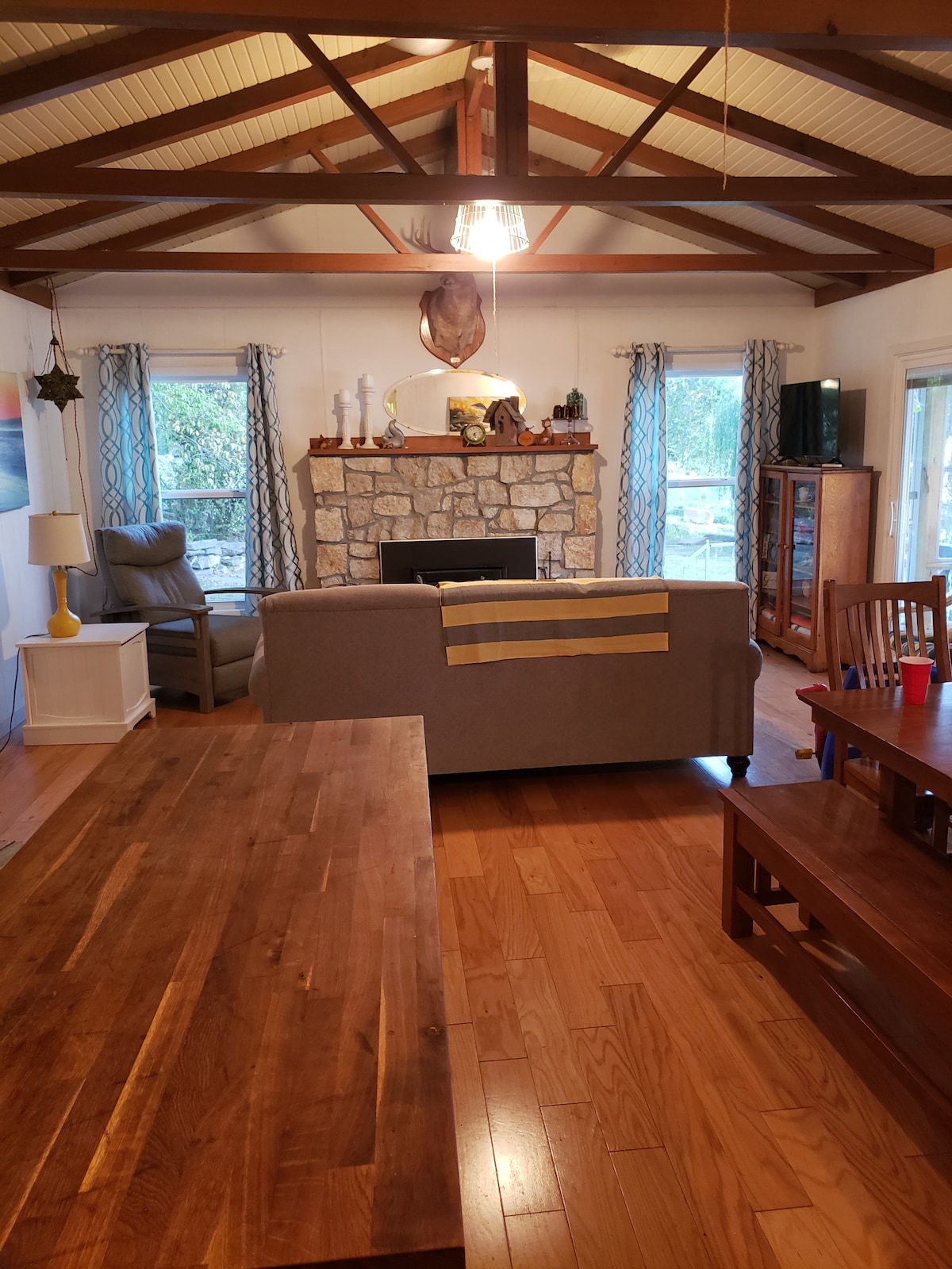 The Bunkhouse sits adjacent to a large body of water. Just 10 miles to Pittsburg and 30 miles to Joplin, MO. Guests can enjoy time outside on the covered porch next to the water, sit around the fire pit on those cool evenings, go for a hike, play a game of pickleball, or enjoy some catch and release fishing from the bank. Experience country living and sights and sounds of nature. Free range chickens also roam the property. 3 GUESTS MAX NO OUTSIDE GUESTS
