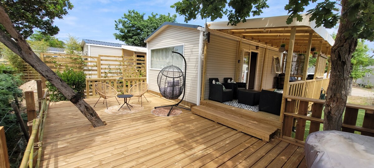 Mobilheim 2 Schlafzimmer 30 m² Terrasse und Garten