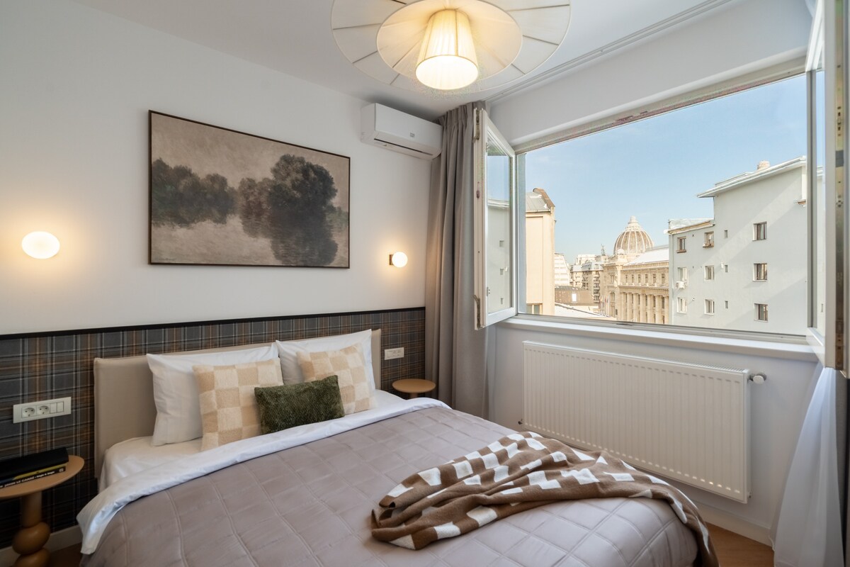 Experience the charm of our urban loft in the heart of the city! Enjoy the peace in our elegant bedroom, with wide windows that fill the room with sunlight, and settle into a luxurious marble bathroom. Located in a lovely neighborhood, this inviting space offers a fully equipped kitchen, a relaxing living area, and a small balcony. Perfect for the modern traveler who values style and comfort. Book your stay - delight in the simple luxuries and make this loft your personal hideaway.