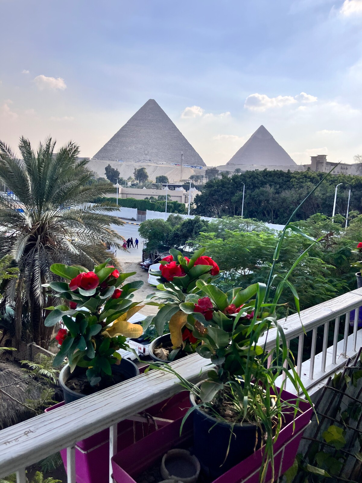 Danke für deinen Besuch im Pyramids View Apartment. Unsere Wohnung ist ein besonderer Ort, um sich zu entspannen und die herrliche und magische Aussicht auf die Pyramiden von Gizeh zu genießen. Die Pyramiden sind nur fünf Gehminuten von unserer Wohnung entfernt. Bitte erkundige dich nach unseren Ausflügen und privaten Touren. Wir machen sie speziell für dich. Wir unterstützen dich bei allem, was du benötigst. Wir geben unser Bestes, um dein Erlebnis so perfekt zu machen, dass dein Glück und deine Sicherheit unsere obersten Prioritäten sind.