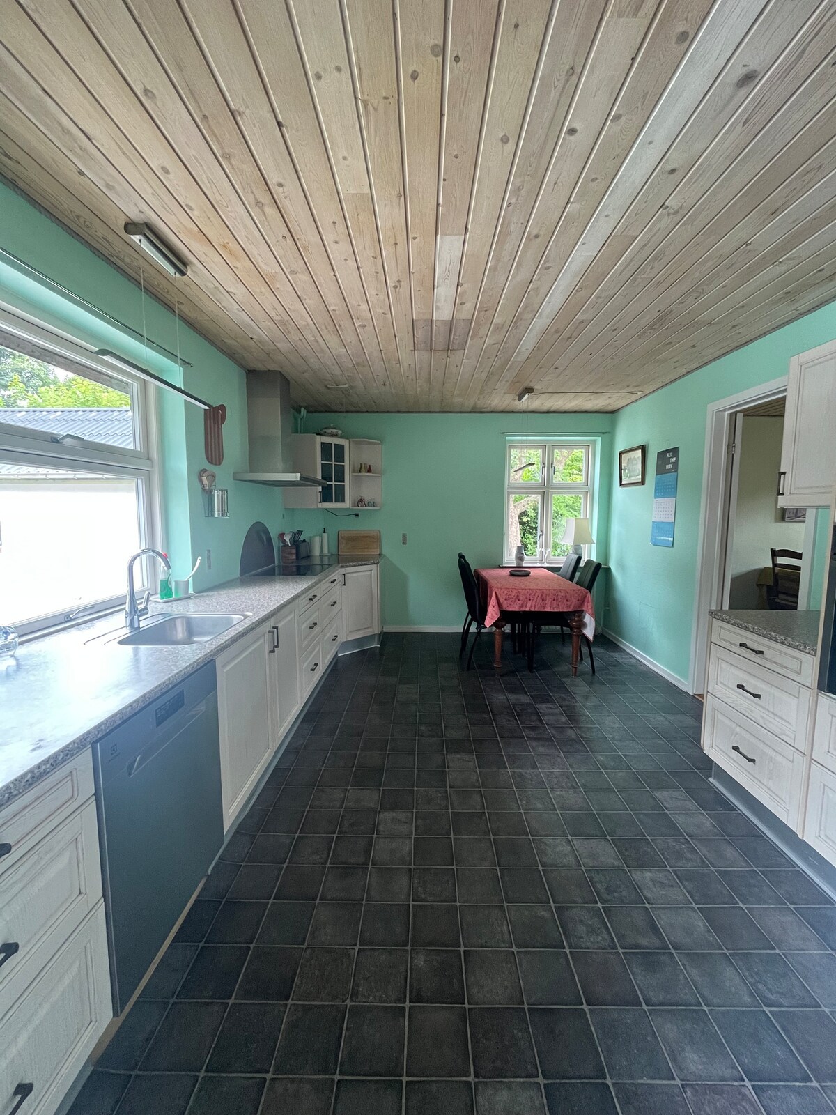 Kirkebakken 4 ist ein altes Fachwerkhaus aus dem Jahr 1780, zentral gelegen in Rosernes By Mariager. Das Haus verfügt über einen kleinen Garten mit Terrasse mit Gartentisch, Stühlen und Grill. Das Haus wurde komplett renoviert und verfügt über Fußbodenheizung und einen offenen Kamin. Kirkebakken 4 ist ein altes Haus, in dem die Renovierung mit Respekt für das Haus durchgeführt wurde, daher gibt es einen Höhenunterschied im Erdgeschoss sowie eine Treppe zum 1. Stock. Das Haus befindet sich im Herzen von Mariager und mit Blick auf die schöne und historische Klosterkirche der Stadt.
