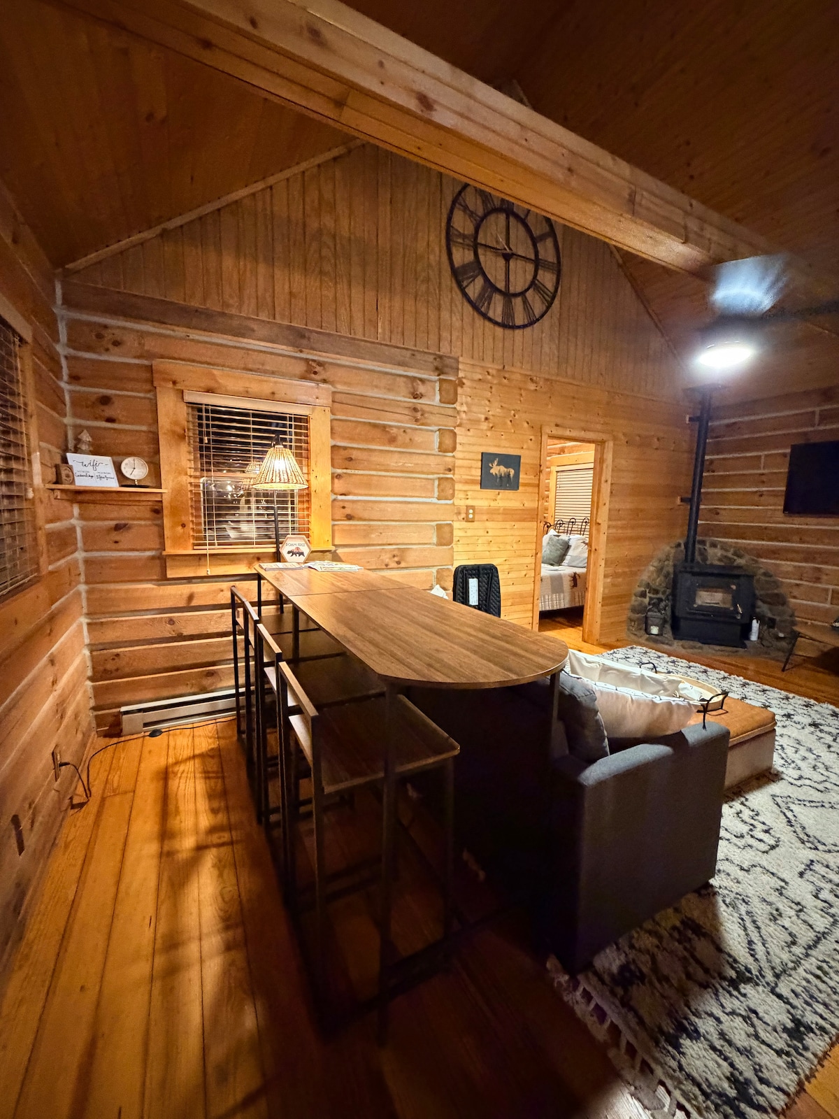 Entspann dich in dieser besonderen und ruhigen Unterkunft. Dieses Loft wurde aus Holz gebaut, das auf diesem Bauernhof gesägt und gemahlen wurde. Genieße die Harthölzer von Indiana, die dich in dieser Unterkunft umgeben. Zentral gelegen, bist du nicht weit von Holiday World, Jasper, Lincoln City, Patoka Lake und Historic Huntingburg entfernt. Das Hauptschlafzimmer verfügt über ein Kingsize-Bett. Der Wohnbereich verfügt über zwei Einzelbetten, TV, WLAN und Küche. Dieser Raum ist perfekt für Singles, Paare oder kleine Familien. Die meisten lieben die Wendeltreppe und die große Terrasse.