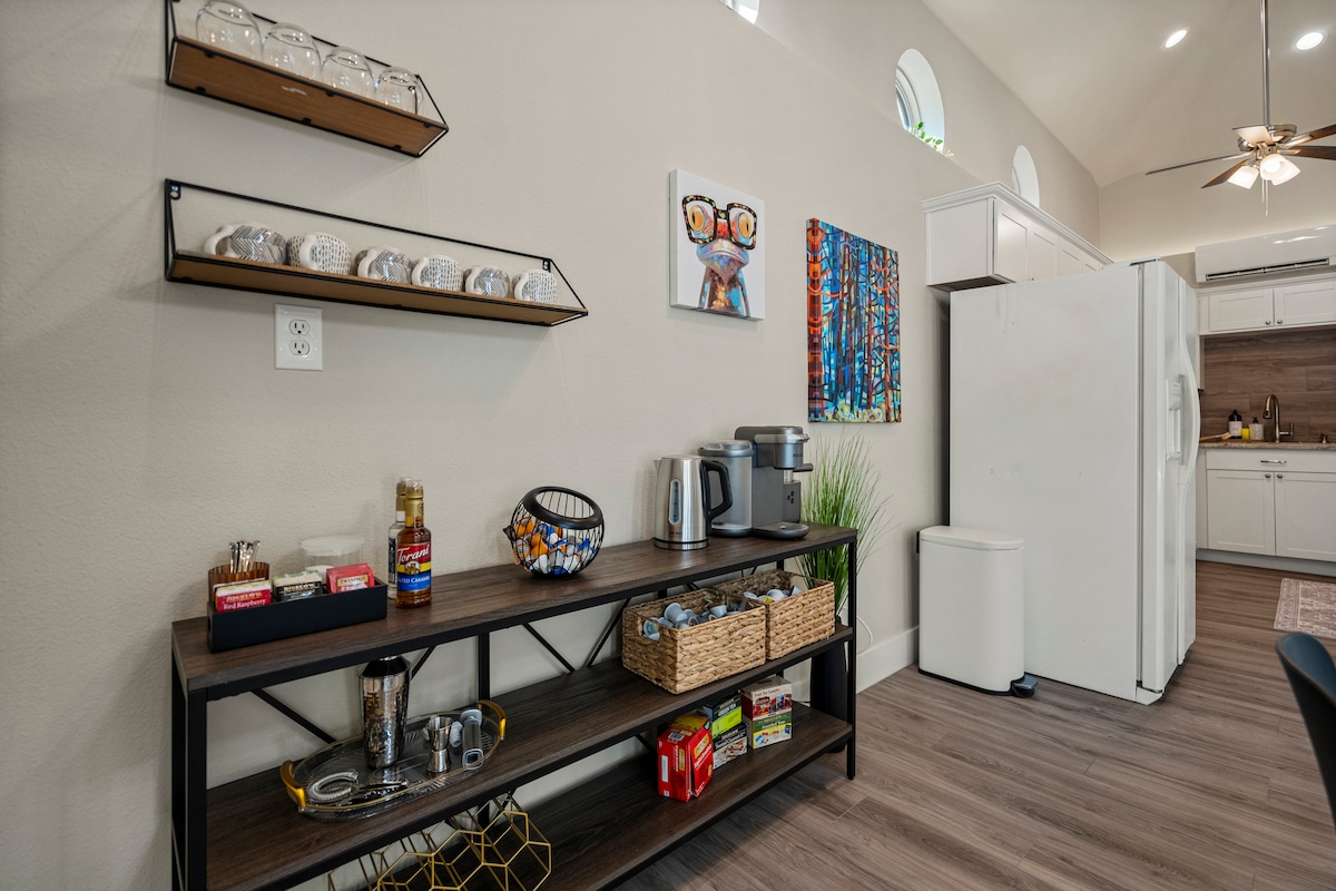 Der Bungalow ist ein renoviertes und professionell eingerichtetes Haus mit zwei Schlafzimmern, einem Badezimmer, einer Garage und einer Waschküche. Die moderne Küche verfügt über einen Gasherd, der voll mit Geschirr, Töpfen & Pfannen und wichtigen Geräten ausgestattet ist. Frühstücksartikel sind ebenfalls vorrätig. Drei Fernseher mit YouTube TV, Prime TV und Netflix werden vom Gastgeber bereitgestellt. Die Schlafzimmer verfügen über ein neues Queensize-Bett und ein Sofa im Wohnzimmer für maximal 5 Gäste sowie ein Reisebett für die Kleinen. Genieße eine möblierte Terrasse und eine Feuerstelle.