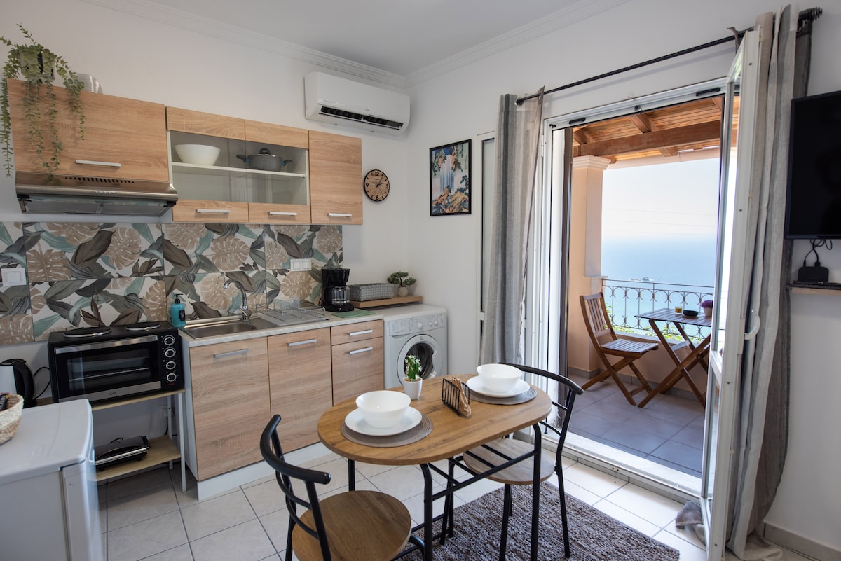 Unsere komplett renovierte Wohnung im modernen Stil mit ihrem kleinen Hof liegt über einem der schönsten Strände der Insel Korfu. Ideal für Paare, die eine tolle Zeit in einer tollen Gegend suchen. Die voll ausgestattete moderne offene Küche ermöglicht es dir, zu kochen und deine Mahlzeiten mit Blick auf das Meer zu genießen. Komfortables Sofa, großer LCD-Smart-Flachbildschirm und Kabel-Sat-TV, Klimaanlage, Sofa, Cocomat-Doppelbett. Duschbad. Starling-Satelliten-WLAN ist ebenfalls in der Wohnung installiert!