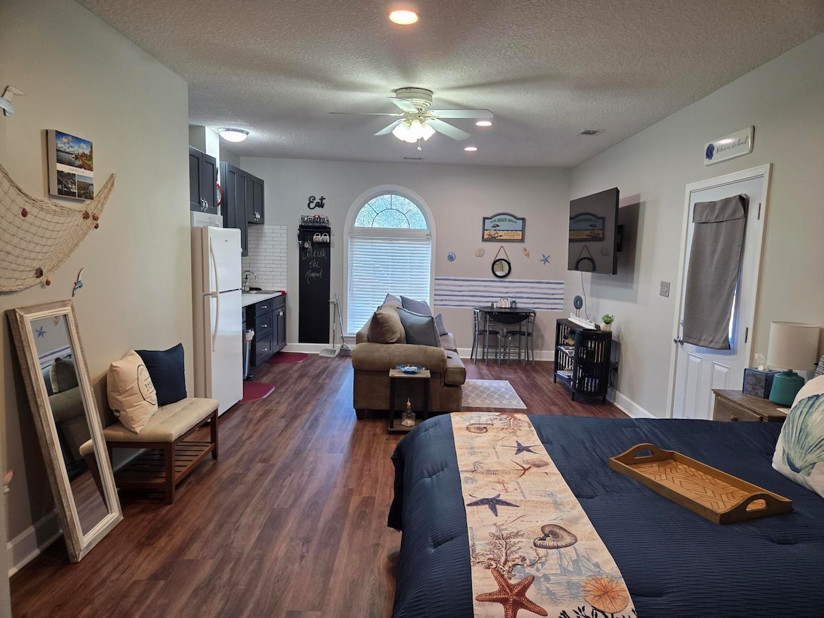 Dieses charmante Gästehaus befindet sich neben einem anderen Airbnb, das zwischen Halifax und Wright Square liegt. Minuten von Jekyll und St. Simons für den Strandzugang entfernt. Neu eingerichtet und sehr entspannend. Dieser Raum wurde 2023 komplett renoviert und umgebaut. Perfekt für einen Kurzurlaub mit Paaren oder einfach nur für sich allein in einer ruhigen Straße. Neuer Sichtschutzzaun installiert. Willkommen in deinem zweiten Zuhause!